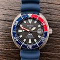 Японские мужские механические часы Seiko SRPB99K1 из коллекции Prospex – стильный вариант в красно-синей расцветке «Pepsi», символизирующей сотрудничество бренда с профессиональной ассоциацией инструкторов по дайвингу Radi.