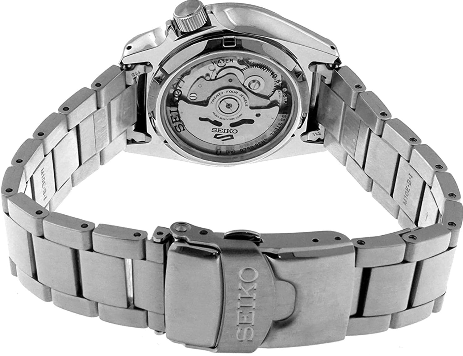 Мужские механические японские наручные часы Seiko 5 Sports SRPE51K1, механический механизм (автоматический калибр) с высокой точностью. Класс водозащиты: 100 метров, позволит плавать, нырять и заниматься другими водными видами спорта. Корпус часов изготовлен из стали. Окошки дня недели и даты находятся в положении 3 часа. Стрелки и метки с люминесцентным покрытиемЛюминесцентное покрытиеПозволяет считывать показания времени в темноте. Производители наносят на стрелки, часовые индексы, безель или поверхность циферблата светонакопительный состав, дающий холодное свечение.. Стальной браслет на раскладной застёжкеРаскладная застёжкаТакой тип застёжки используется только на браслетах из металла. Она никогда не раскрывается полностью, происходит разделение на 2 и более частей. Раскладывающая застёжка снизит вероятность потери часов к минимуму..