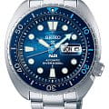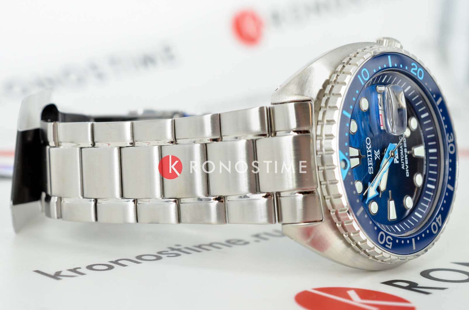Seiko Prospex PADI Special Edition SRPK01K1 — профессиональные автоматические часы, созданные в рамках сотрудничества с PADI, крупнейшей организацией инструкторов по дайвингу. Массивный корпус диаметром 45 мм выполнен из нержавеющей стали и защищён завинчивающейся задней крышкой и заводной головкой. Циферблат закрыт прочным сапфировым стекломСапфировое стеклоПрочный и надёжный материал из кристалла сапфира синтетического происхождения, характеризующийся особой твёрдостью и устойчивостью к царапинам и повреждениям. с антибликовым покрытиемАнтибликовое покрытиеСлой оксида металла в 0,13-0,3 микрон, благодаря которому стекло часов не бликует и не отражает свет. Антибликовое покрытие уменьшает отражение света в 10 раз, обеспечивая отличную читаемость показателей циферблата. и увеличительным стеклом над календарём. Градиентный синий циферблат с волнистым узором имитирует солнечные блики на воде и украшен логотипом PADI. Метки и стрелки покрыты люминесцентным покрытиемЛюминесцентное покрытиеПозволяет считывать показания времени в темноте. Производители наносят на стрелки, часовые индексы, безель или поверхность циферблата светонакопительный состав, дающий холодное свечение. LumiBrite для превосходной читаемости в темноте и под водой. БезельБезельВнешний ободок, закрепляющий стекло. В спортивных часах так называется поворотное кольцо с делениями на циферблате, выполняет роль таймера – замеряет отрезки времени на шкале. Неподвижный безель – элемент декора. Однонаправленно вращающийся безель на дайверских часах позволяет фиксировать моменты погружения и выныривания на поверхность. с PVD-покрытиемPVDУльтратонкое покрытие наносится в технике вакуумного напыления, сочетает в себе нитрид титана особой прочности со слоем золота или оксида хрома. Несёт в себе декоративную или защитную функцию.. Модель оснащена автоматическим механизмом Seiko 4R36 с ручным заводом, 24 камнями и функцией остановки секундной стрелки. Запас хода составляет около 41 часа. На циферблате — отображение времени, даты и дня недели на позиции «3 часа». Браслет из нержавеющей стали снабжён тройной раскладной застёжкойРаскладная застёжкаТакой тип застёжки используется только на браслетах из металла. Она никогда не раскрывается полностью, происходит разделение на 2 и более частей. Раскладывающая застёжка снизит вероятность потери часов к минимуму. с кнопками и удлинением для дайверовУдлинение для дайверовЗастёжка с удлинением для дайверов представляет собой безопасное крепление, которое позволяет надевать часы поверх гидрокостюма. Гибкая застёжка удлиняется на 1-2 миллиметра.. Часы соответствуют ISO-стандарту и обладают водонепроницаемостью до 200 метров, что делает их надёжным выбором как для дайвинга, так и для повседневной носки. SRPK01 — мощная и функциональная модель с морским характером и профессиональными возможностями.