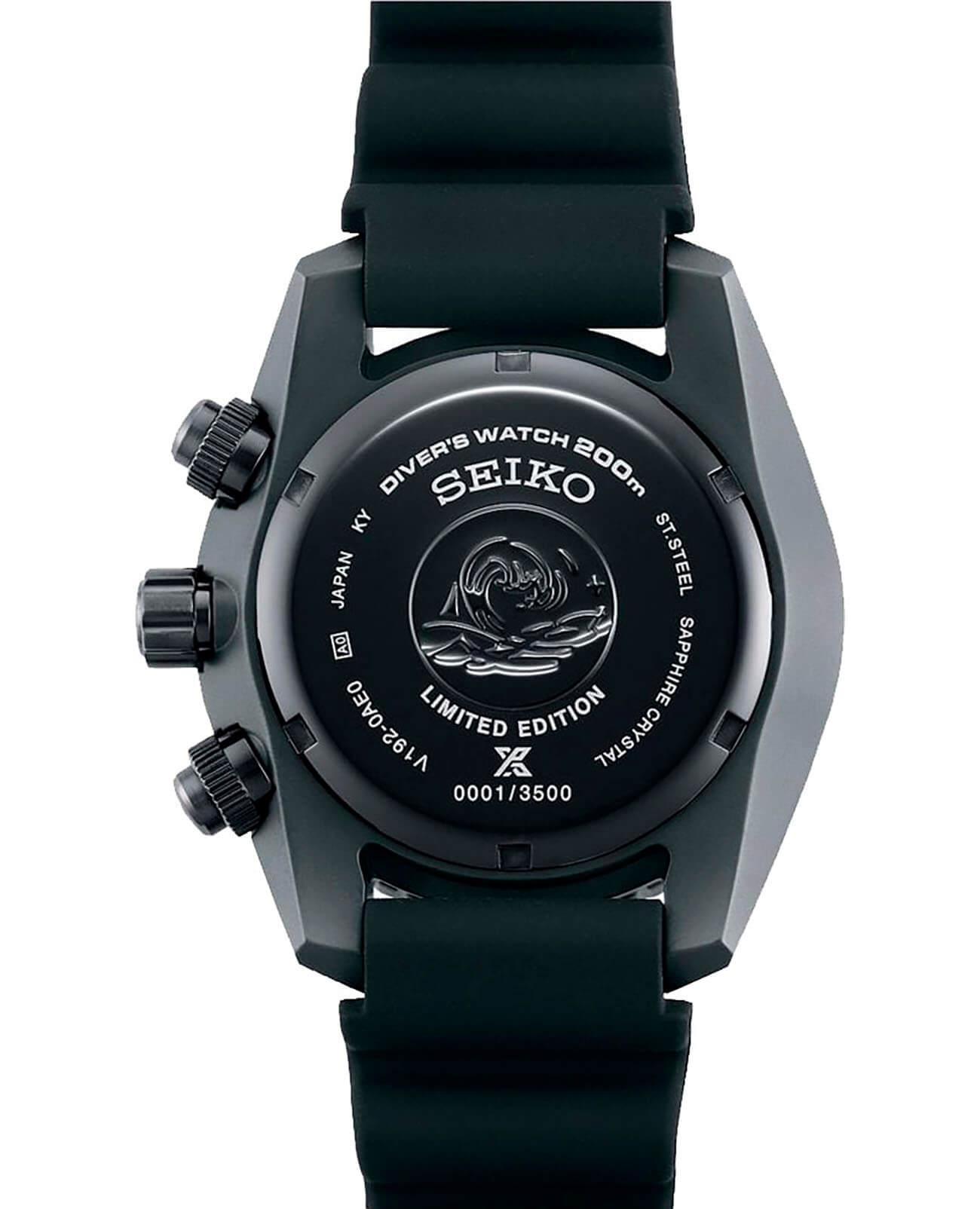 Аксессуар привлекает сдержанным тёмным исполнением в дайверской тематике. Этому способствуют однонаправленно вращающийся безель, заводная головка с защитой, завинчивающаяся задняя крышка, крупная индикация времени. Кварцевый хронографХронографФункция позволяет измерять отрезки времени с особой точностью: часы, минуты, секунды. Верным признаком хронографа является наличие на циферблате 3 дополнительных окошек-счётчиков. получает питание от источников света, реализуется технология . Полностью заряженной батарейки хватит на 6 месяцев работы. Японский механизм Seiko V192 отличается высокой точностью хода. Стрелки и метки дополнены люминесцентной подсветкой LumiBriteЛюминесцентное покрытиеПозволяет считывать показания времени в темноте. Производители наносят на стрелки, часовые индексы, безель или поверхность циферблата светонакопительный состав, дающий холодное свечение..Сапфировое стекло не допускает образования царапин. Часы оснащены секундомером, календарём, индикатором EOLEOLПредставляет собой систему, уведомляющую владельца часов о необходимости замены элемента питания. За 2 недели до полного разряда батарейки секундная стрелка перестаёт ходить чётко и начинает перепрыгивать на 3-4 деления.. Гибкий ремешок сделан из силикона. Диаметр корпуса: 44,5 мм.