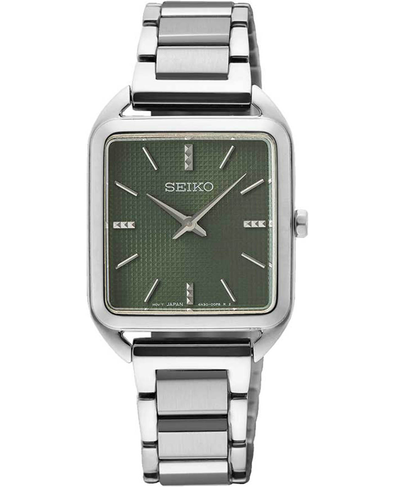 Женские японские часы Seiko Discover More SWR075P1 c кварцевым механизмом с высокой точностью с калибром 4N30.Минеральное стеклоМинеральное стеклоМинеральное стекло представляет собой искусственно выращенный минерал кварца. Такое стекло отличается особой устойчивостью к повреждениям и царапинам. Уступает по некоторым качествам сапфировому стеклу. с повышенной прочностью Hardlex устойчивое к появлению царапин, обладающее высокой прозрачностью. Водозащита до 5 ATM позволяет не снимать часы при дожде, мытье рук или случайных брызгах. Корпус и браслет изготовлены из нержавеющей стали. Браслет с раскладной застёжкойРаскладная застёжкаТакой тип застёжки используется только на браслетах из металла. Она никогда не раскрывается полностью, происходит разделение на 2 и более частей. Раскладывающая застёжка снизит вероятность потери часов к минимуму. с фиксатором. Зеленый циферблат с метками в виде штрихов. Seiko — это гармония изящного дизайна и технологичной надёжности, компактный и стильный выбор для повседневной классики.