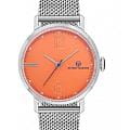 Циферблат с лаконичными индексами и крупными арабскими цифрами «6» и «12», создавая удобную композицию. Дополняет образ сетчатый браслет из нержавеющей стали с миланским плетением на раскладном замкеРаскладной замокДанный вариант застежки используется только на часах с металлическим браслетом. Отличительная особенность такого крепления в том, что длина браслета становится универсальной и вы можете самостоятельно отрегулировать нужный вам размер – застежка просто двигается по браслету часов., подчёркивающий итальянскую эстетику бренда.