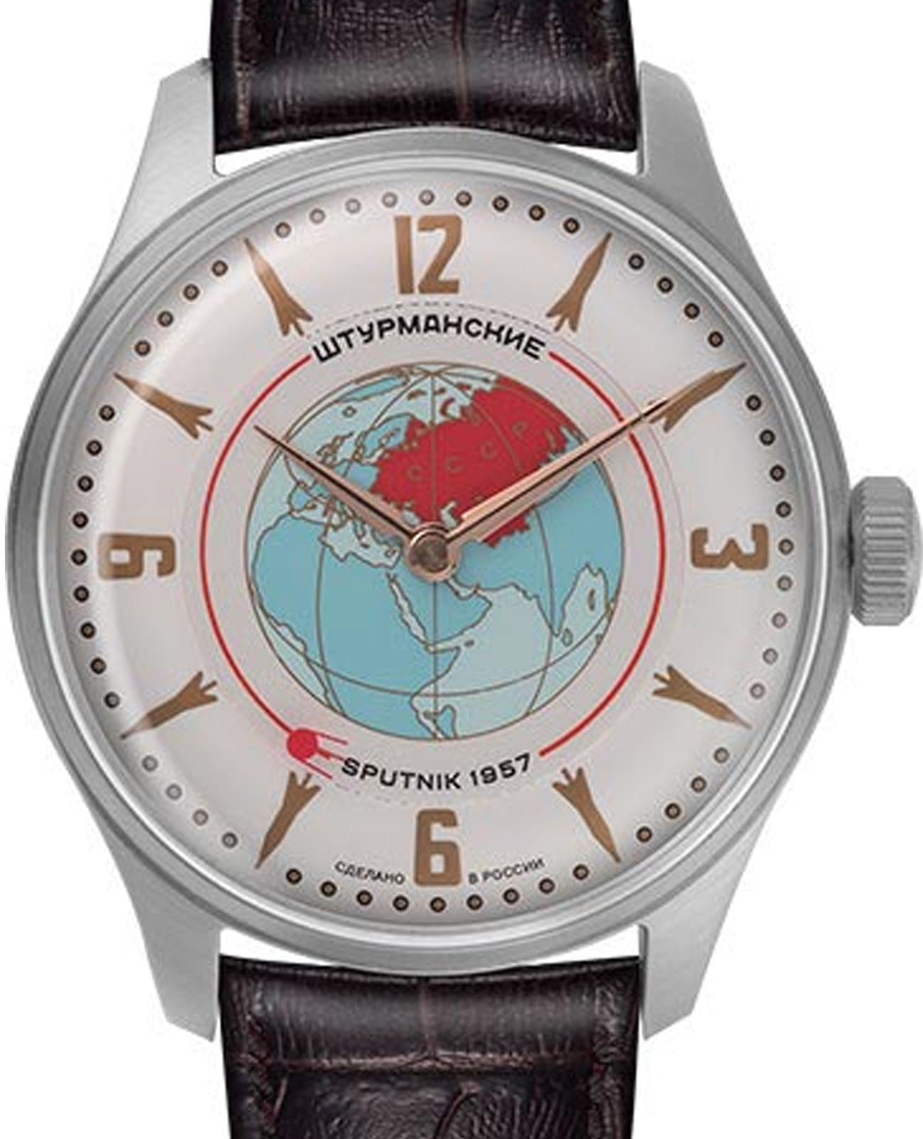 Модель посвящена запуску первого искусственного спутника Земли 4 октября 1957 года. Штурманские увековечили это революционное событие в специальной коллекции. Российские наручные часы Штурманские Спутник 2609-3735430 выводят понятия красоты, надежности и функциональности на новый, ранее недостижимый уровень.