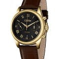 Российские механические наручные часы-хронографХронографФункция позволяет измерять отрезки времени с особой точностью: часы, минуты, секунды. Верным признаком хронографа является наличие на циферблате 3 дополнительных окошек-счётчиков. с секундомеромСекундомерСекундоме́р — прибор, способный измерять интервалы времени с точностью до долей секунды. Слава Сенат 1889258/300-4617, которые станут идеальным аксессуаром для повседневного ношения. Эти часы сочетают в себе элегантность и практичность, предлагая безупречный стиль и надежность. Оснащенные механизмом Peacock 4617 с автоподзаводом, они обеспечивают точность и долговечность. Стальной корпус с IP-покрытиемIP-покрытиеМетод ионного напыления. Демонстрирует повышенную устойчивость к истиранию, окислению и химическим веществам. Под воздействием высокого давления и температуры около 1500°C молекулы металла надёжно соединяются с частицами корпуса часов. золотистого цвета и  сапфировым стекломСапфировое стеклоПрочный и надёжный материал из кристалла сапфира синтетического происхождения, характеризующийся особой твёрдостью и устойчивостью к царапинам и повреждениям. защищает черный циферблат с римскими цифрами. Часы также имеют календарь с окошком даты на 6 часах и водозащиту до 50WR, что делает их надежными в различных условиях. Стрелки часов с люминесцентным покрытиемЛюминесцентное покрытиеПозволяет считывать показания времени в темноте. Производители наносят на стрелки, часовые индексы, безель или поверхность циферблата светонакопительный состав, дающий холодное свечение., что облегчает чтение времени даже в условиях слабого освещения. Текстурированный кожаный коричневый ремешок с классической застежкой завершает этот изысканный образ.
