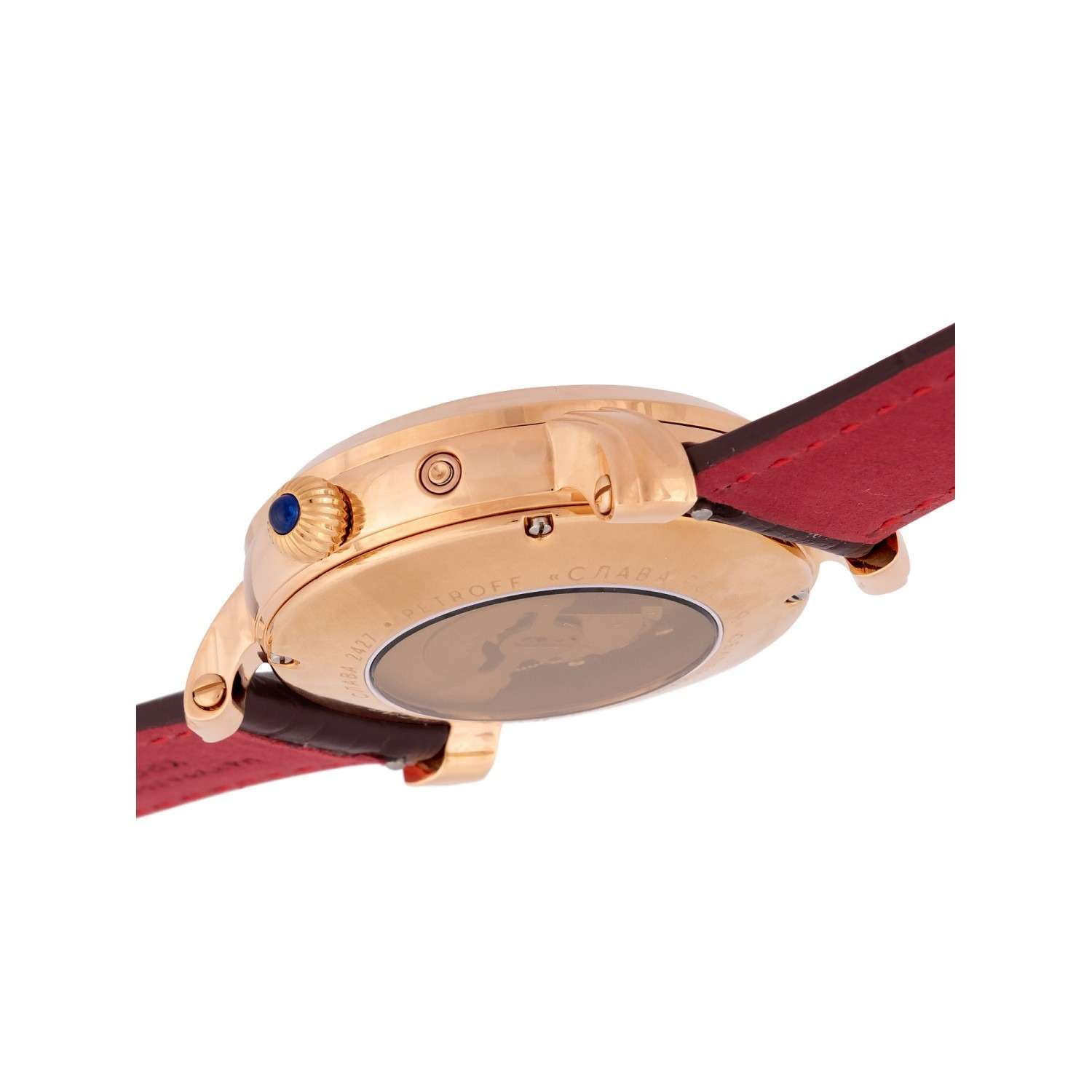 Наручные часы Слава Слава России 2443615/300-2427 — воплощение классического стиля и исключительного качества, произведенные в России. Эта модель из лимитированной коллекции, выпущенной в количестве всего 300 экземпляров, станет великолепным дополнением к вашему образу. Часы оснащены надежным механическим механизмом "Слава 2427" с автоподзаводом, обеспечивающим точный ход и оснащены двойным календарем, что позволяет всегда быть в курсе текущей даты. Корпус из нержавеющей стали с золотистым PVDPVDУльтратонкое покрытие наносится в технике вакуумного напыления, сочетает в себе нитрид титана особой прочности со слоем золота или оксида хрома. Несёт в себе декоративную или защитную функцию. покрытием диаметром 41 мм и толщиной 14,2 мм отличается высокой прочностью и водозащитой до 5 ATM. Серебристый циферблат с арабскими цифрами защищен сапфировым стекломСапфировое стеклоПрочный и надёжный материал из кристалла сапфира синтетического происхождения, характеризующийся особой твёрдостью и устойчивостью к царапинам и повреждениям., устойчивым к царапинам, что позволяет надолго сохранить безупречный вид часов. На 3 часах расположено окошко с указателем даты и дня недели. Кожаный ремень из крокодила с застежкой «бабочка»Застёжка "бабочка"Такой вид застёжки дополняется предохранителями, помогающими избежать случайного раскрытия браслета. Обладают изящным исполнением. добавляет элегантности и комфорта, создавая ощущение роскоши и изысканности. Эта модель станет идеальным выбором для тех, кто ценит традиции и высокое качество в сочетании с современным дизайном.