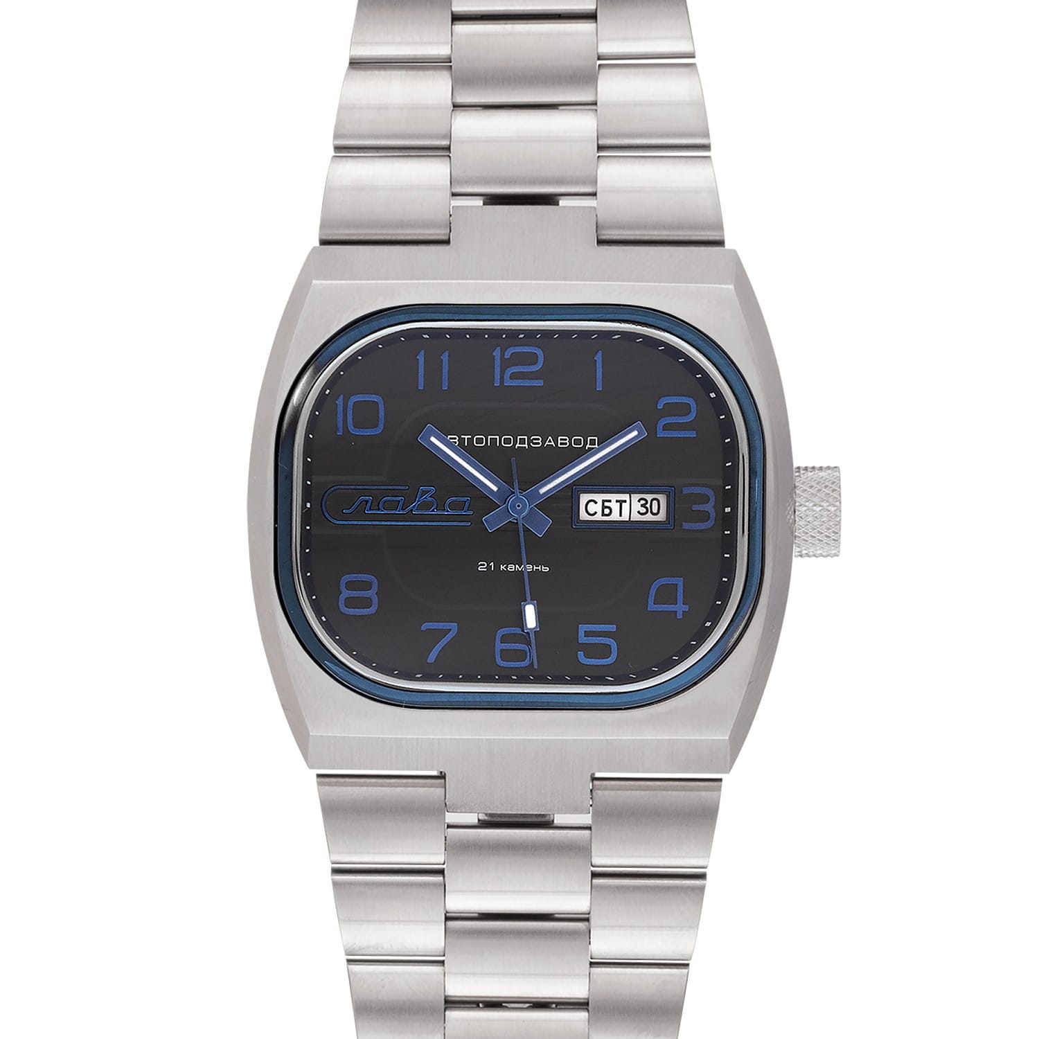 Российские часы Слава 3047711/100-8205 оснащены механизмом Miyota 8205, что обеспечивает исключительную надежность и точность хода. Корпус и браслет часов выполнены из стали, что придает им долговечность и устойчивость к внешним воздействиям. Сапфировое стеклоСапфировое стеклоПрочный и надёжный материал из кристалла сапфира синтетического происхождения, характеризующийся особой твёрдостью и устойчивостью к царапинам и повреждениям.. Класс водозащиты часов составляет 100 метров, позволит плавать, нырять и заниматься другими водными видами спорта. Эти часы идеально подойдут для повседневного использования, сочетая в себе стиль, надежность и функциональность. Стрелки с люминесцентным покрытиемЛюминесцентное покрытиеПозволяет считывать показания времени в темноте. Производители наносят на стрелки, часовые индексы, безель или поверхность циферблата светонакопительный состав, дающий холодное свечение.. Окошки дня недели и даты находятся в положении 3 часа. Стальной браслет на раскладной застёжкеРаскладная застёжкаТакой тип застёжки используется только на браслетах из металла. Она никогда не раскрывается полностью, происходит разделение на 2 и более частей. Раскладывающая застёжка снизит вероятность потери часов к минимуму..
