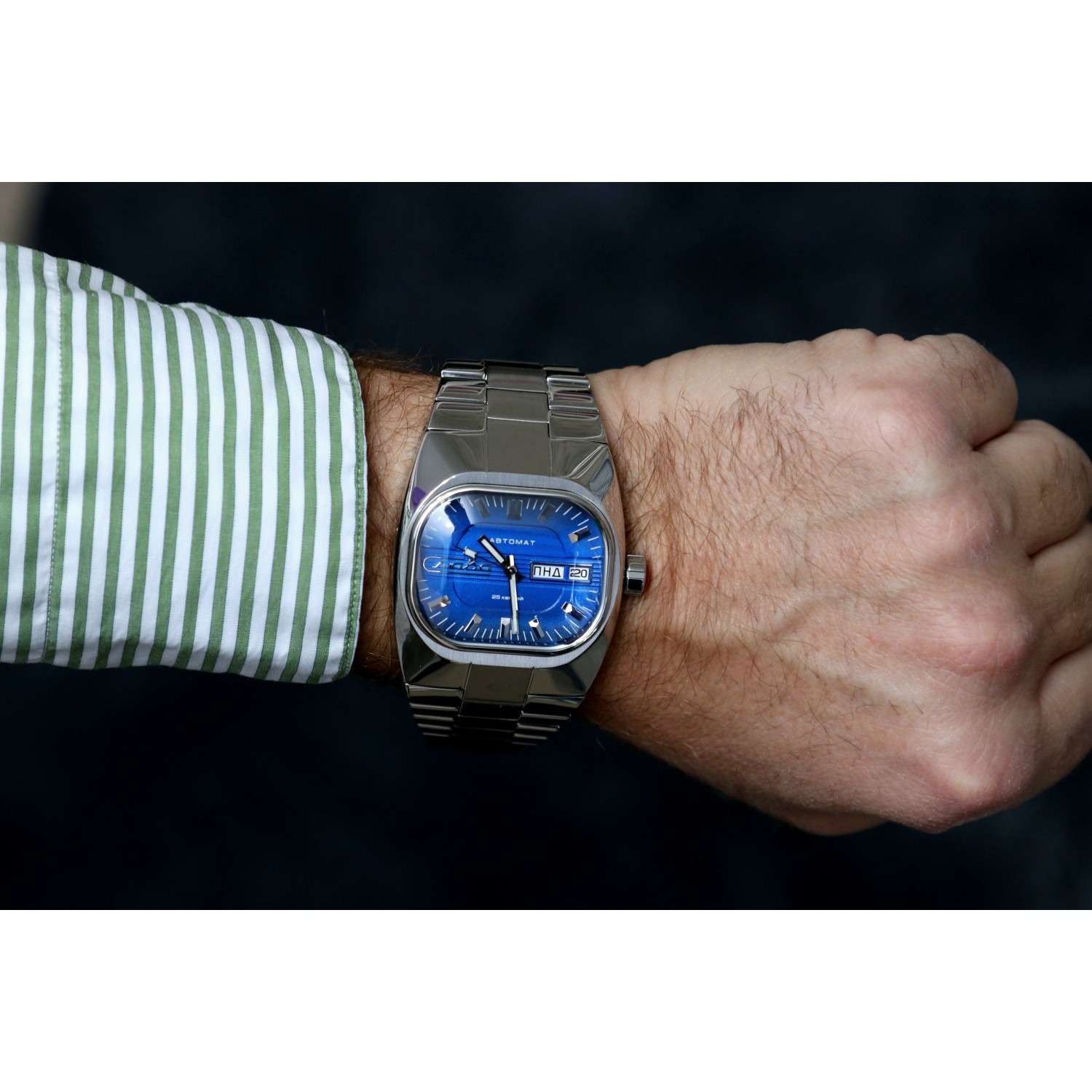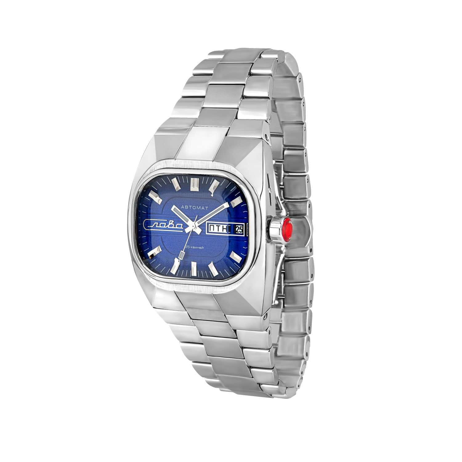 Часы Слава Танк 4320688/100-2427 — это элегантное сочетание ретро стиля и современных технологий, способное подчеркнуть изысканный вкус владельца и дополнить любой образ. Эта лимитированная серия, состоящая из 300 экземпляров, является современной интерпретацией легендарного выпуска часов, созданного специально для делегатов XXV съезда КПСС в 1975 году. Механизм часов с автоподзаводом оснащен калибром «Слава 2427». Запас хода составляет 31 час, что обеспечивает надежность и долговечность в использовании. Корпус и браслет с застежкой «бабочка»Застёжка "бабочка"Такой вид застёжки дополняется предохранителями, помогающими избежать случайного раскрытия браслета. Обладают изящным исполнением. выполнены из высококачественной стали 904L, придающей модели прочность и устойчивость к внешним воздействиям. Диаметр корпуса составляет 42 мм, а толщина — 13 мм, что делает часы удобными в ношении. Синий циферблат с метками в виде штрихов защищен выпуклым сапфировым стекломСапфировое стеклоПрочный и надёжный материал из кристалла сапфира синтетического происхождения, характеризующийся особой твёрдостью и устойчивостью к царапинам и повреждениям., стойким к царапинам. Стрелки и метки обладают люминесцентным покрытиемЛюминесцентное покрытиеПозволяет считывать показания времени в темноте. Производители наносят на стрелки, часовые индексы, безель или поверхность циферблата светонакопительный состав, дающий холодное свечение., которое светится в темноте после зарядки на свету, обеспечивая отличную видимость в любых условиях. Календарь с указанием числа и дня недели расположен в положении 3 часа, добавляя функциональности модели. Каждые часы имеют индивидуальный серийный номер, выгравированный на боковой части корпуса, что подчеркивает их уникальность. Прозрачная задняя крышка позволяет наблюдать за работой механизма, а надежный стальной браслет с раскладывающейся застежкой обеспечивает комфорт и безопасность при носке. Часы обладают водозащитой 100WR, что делает их идеальными для активного образа жизни.