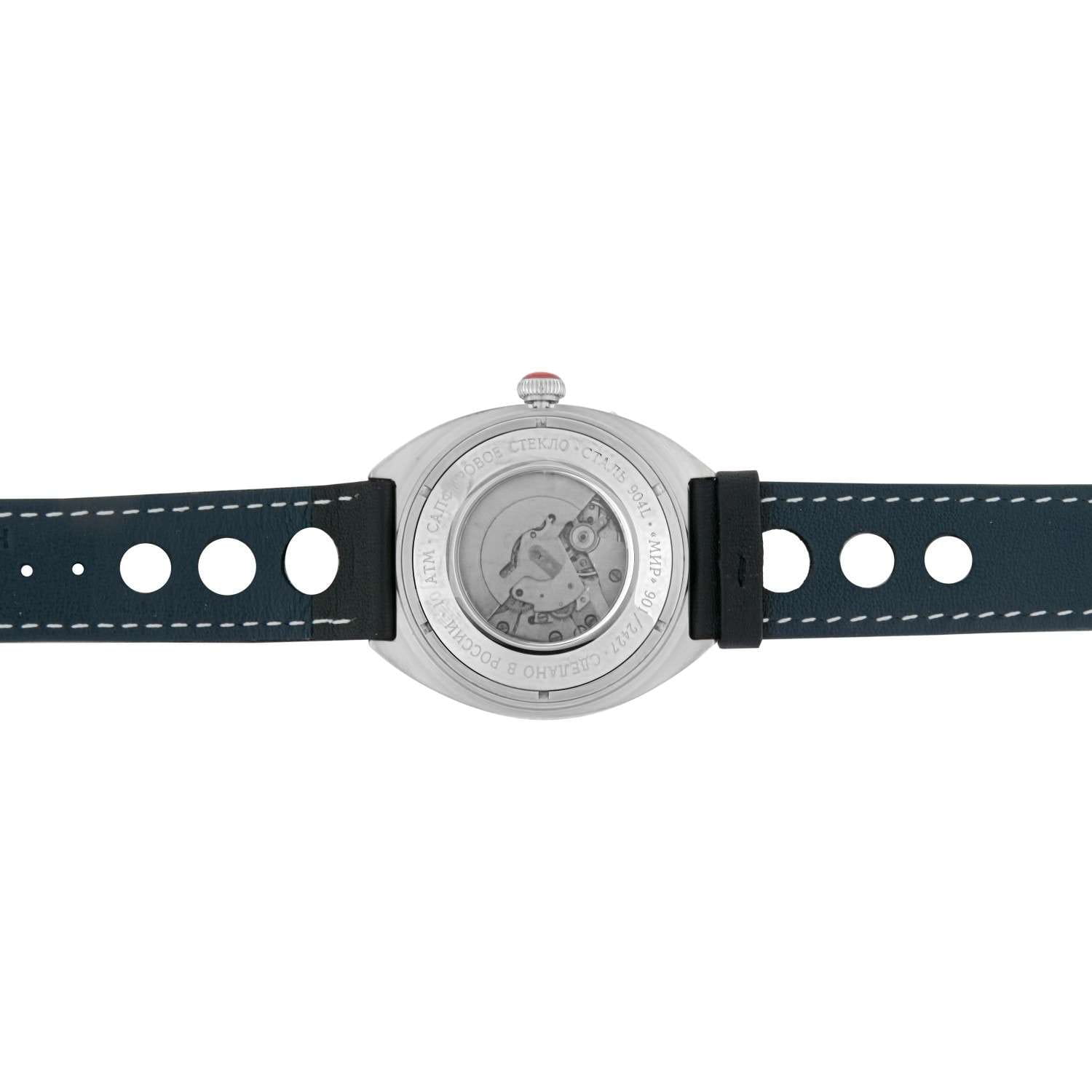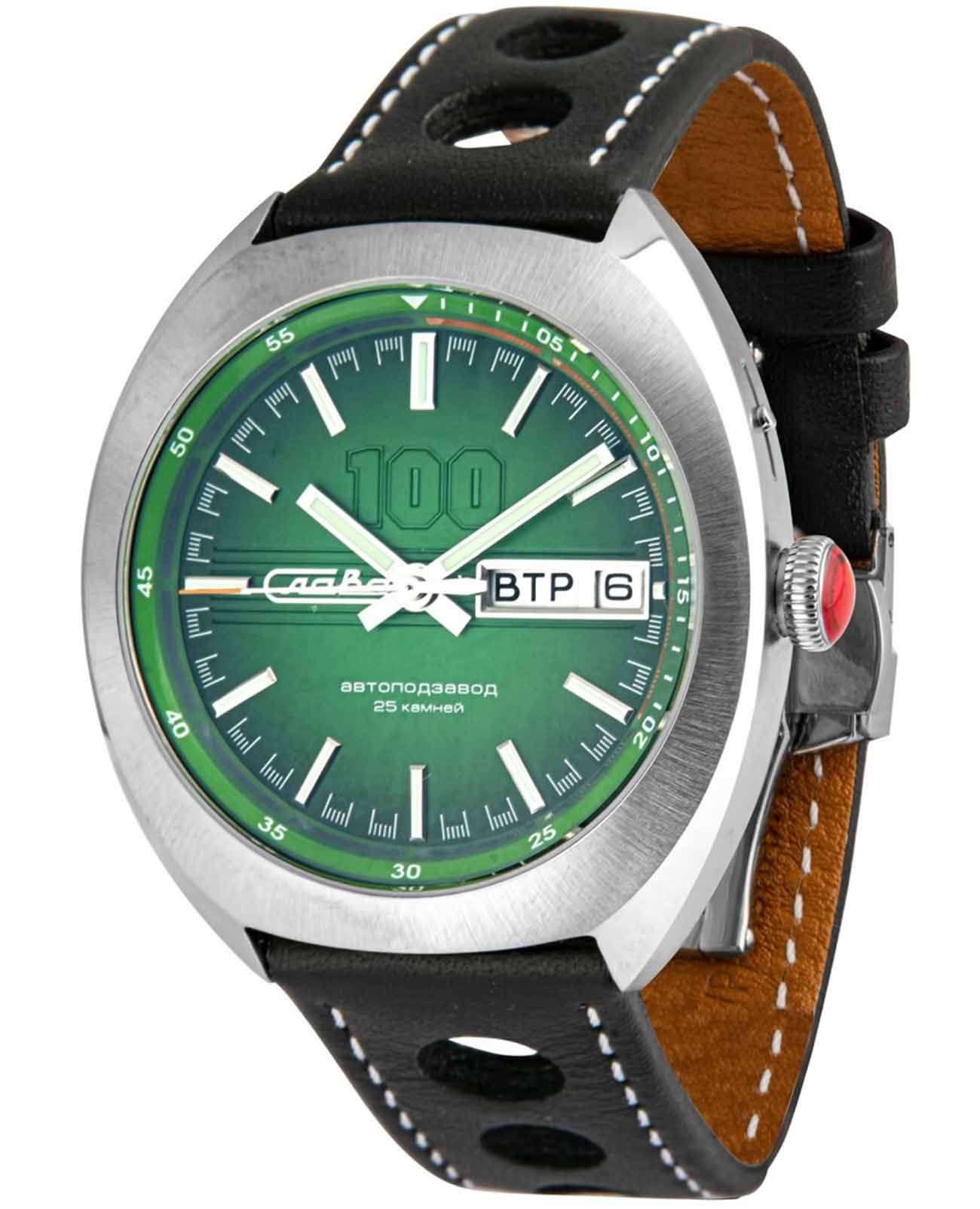 Российские часы Слава Мир 9010576/300-2427 оснащены механизмом Слава 2427, что обеспечивает исключительную надежность и точность хода. Корпус часов выполнен из нержавеющей стали, что придает им долговечность и устойчивость к внешним воздействиям. Сапфировое стеклоСапфировое стеклоПрочный и надёжный материал из кристалла сапфира синтетического происхождения, характеризующийся особой твёрдостью и устойчивостью к царапинам и повреждениям. защищает зеленый циферблат от царапин и повреждений, обеспечивая долговечность и надежность изделия. Эти часы идеально подойдут для повседневного использования, сочетая в себе стиль, надежность и функциональность. Стрелки и метки с люминесцентным покрытиемЛюминесцентное покрытиеПозволяет считывать показания времени в темноте. Производители наносят на стрелки, часовые индексы, безель или поверхность циферблата светонакопительный состав, дающий холодное свечение., что облегчает чтение времени даже в условиях слабого освещения. Окошки дня недели и даты находятся в положении 3 часа. Часы комплектуются кожаным перфорированным ремешком, прошитым белой нитью и оснащенным классической застежкой, обеспечивая комфорт и надежность в носке. Класс водозащиты часов составляет 100 метров, позволит плавать, нырять и заниматься другими водными видами спорта.