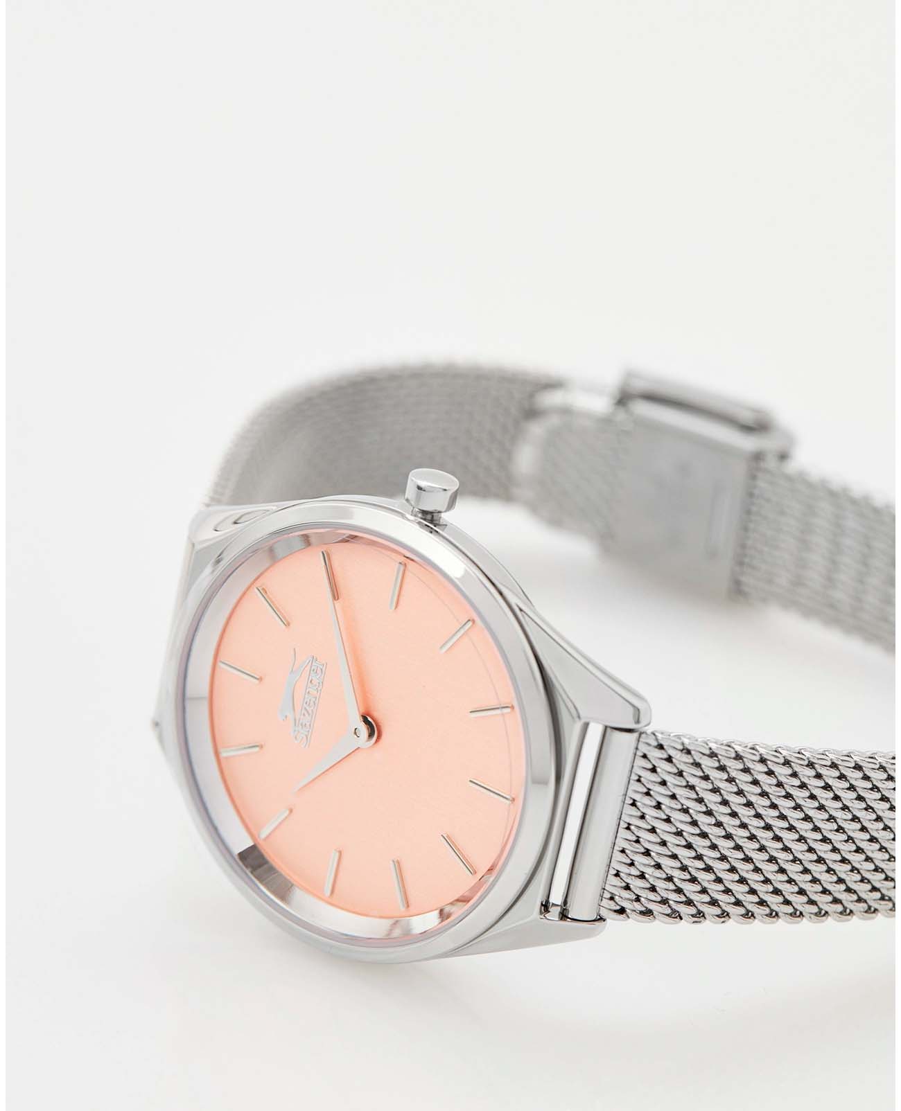 Женские наручные часы Slazenger SL.09.1852.3.06 сочетают в себе элегантный дизайн и надежность современных технологий. Модель обладает круглым корпусом диаметром 32 мм, изготовленным из суперметалла с серебряным покрытием, что обеспечивает высокую устойчивость к внешним воздействиям. Браслет миланского плетения на раскладном замкеРаскладной замокДанный вариант застежки используется только на часах с металлическим браслетом. Отличительная особенность такого крепления в том, что длина браслета становится универсальной и вы можете самостоятельно отрегулировать нужный вам размер – застежка просто двигается по браслету часов., гарантируюет комфортное ношение. Циферблат оснащен индексами для лучшей читаемости времени. Для защиты используется минеральное стеклоМинеральное стеклоМинеральное стекло представляет собой искусственно выращенный минерал кварца. Такое стекло отличается особой устойчивостью к повреждениям и царапинам. Уступает по некоторым качествам сапфировому стеклу., обеспечивающее прочную защиту от царапин. Часы работают на японском кварцевом механизме, что гарантирует точное время без необходимости подзаводки. Водонепроницаемость часов составляет 3 атмосферы (30 метров), что позволяет использовать их в повседневной жизни, но не рекомендуется для плавания или занятий водными видами спорта.