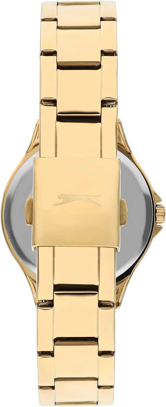 Slazenger SL.09.2021.4.02 – элегантные женские часы, сочетающие стильный дизайн и функциональность. Корпус выполнен из суперметалла с PVD-покрытиемPVDУльтратонкое покрытие наносится в технике вакуумного напыления, сочетает в себе нитрид титана особой прочности со слоем золота или оксида хрома. Несёт в себе декоративную или защитную функцию., придающим модели роскошный внешний вид. Перламутровый циферблат добавляет изысканности, и защищён минеральным стекломМинеральное стеклоМинеральное стекло представляет собой искусственно выращенный минерал кварца. Такое стекло отличается особой устойчивостью к повреждениям и царапинам. Уступает по некоторым качествам сапфировому стеклу., устойчивым к царапинам. БезельБезельВнешний ободок, закрепляющий стекло. В спортивных часах так называется поворотное кольцо с делениями на циферблате, выполняет роль таймера – замеряет отрезки времени на шкале. Неподвижный безель – элемент декора. Однонаправленно вращающийся безель на дайверских часах позволяет фиксировать моменты погружения и выныривания на поверхность. украшен кристаллами. Часы оснащены точным кварцевым механизмом, обеспечивающим надёжное и стабильное отображение времени. Дополнительные функции включают индикацию дня недели и даты, что повышает практичность использования. Браслет из суперметалла с PVD-покрытиемPVDУльтратонкое покрытие наносится в технике вакуумного напыления, сочетает в себе нитрид титана особой прочности со слоем золота или оксида хрома. Несёт в себе декоративную или защитную функцию. оснащён раскладной застёжкойРаскладная застёжкаТакой тип застёжки используется только на браслетах из металла. Она никогда не раскрывается полностью, происходит разделение на 2 и более частей. Раскладывающая застёжка снизит вероятность потери часов к минимуму., обеспечивающей комфортное ношение и надёжную фиксацию на запястье. Водозащита до 30 метров (3 ATM) защищает часы от случайных брызг и дождя, делая их подходящими для повседневного использования.