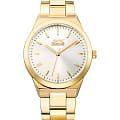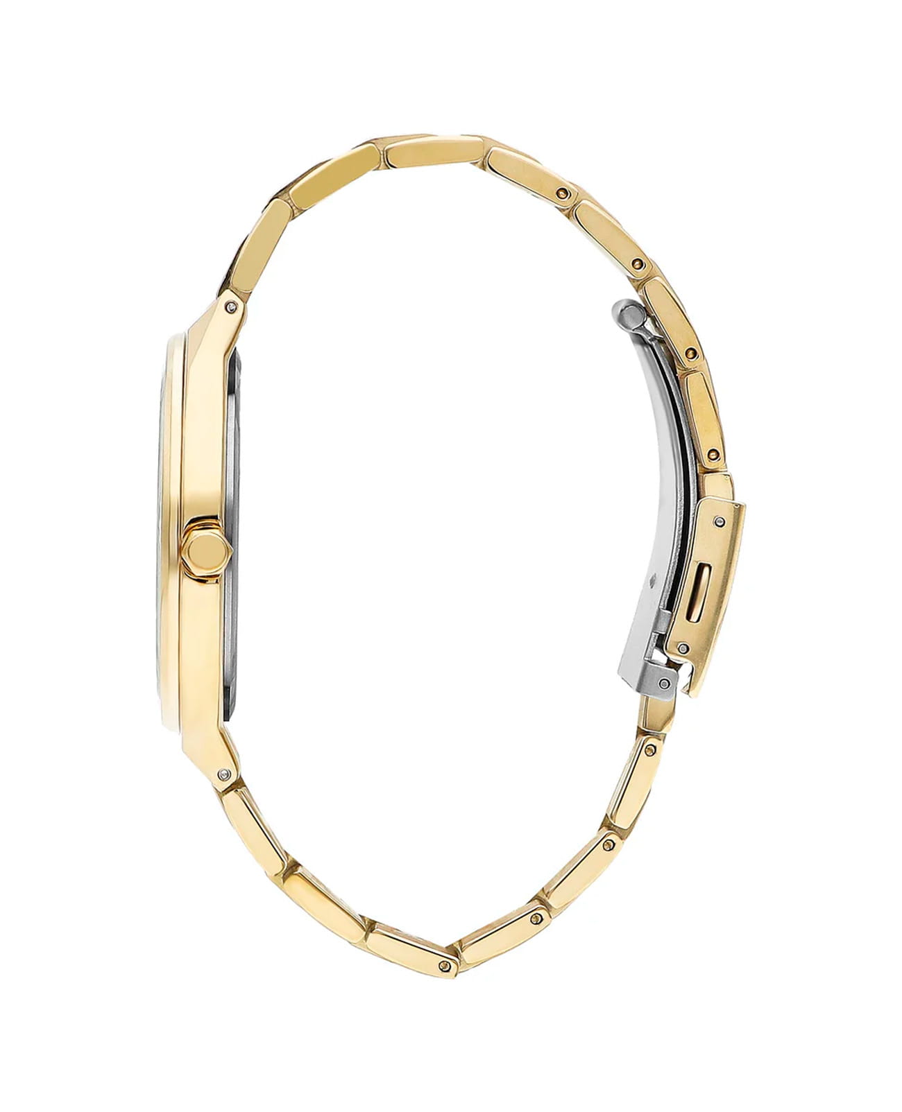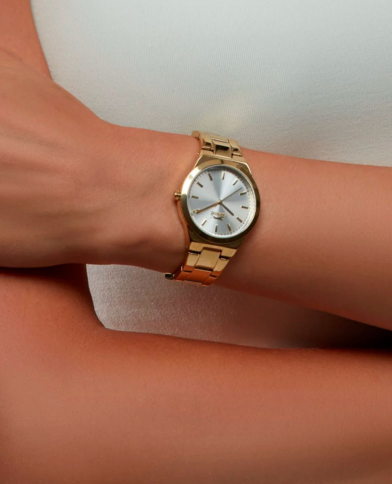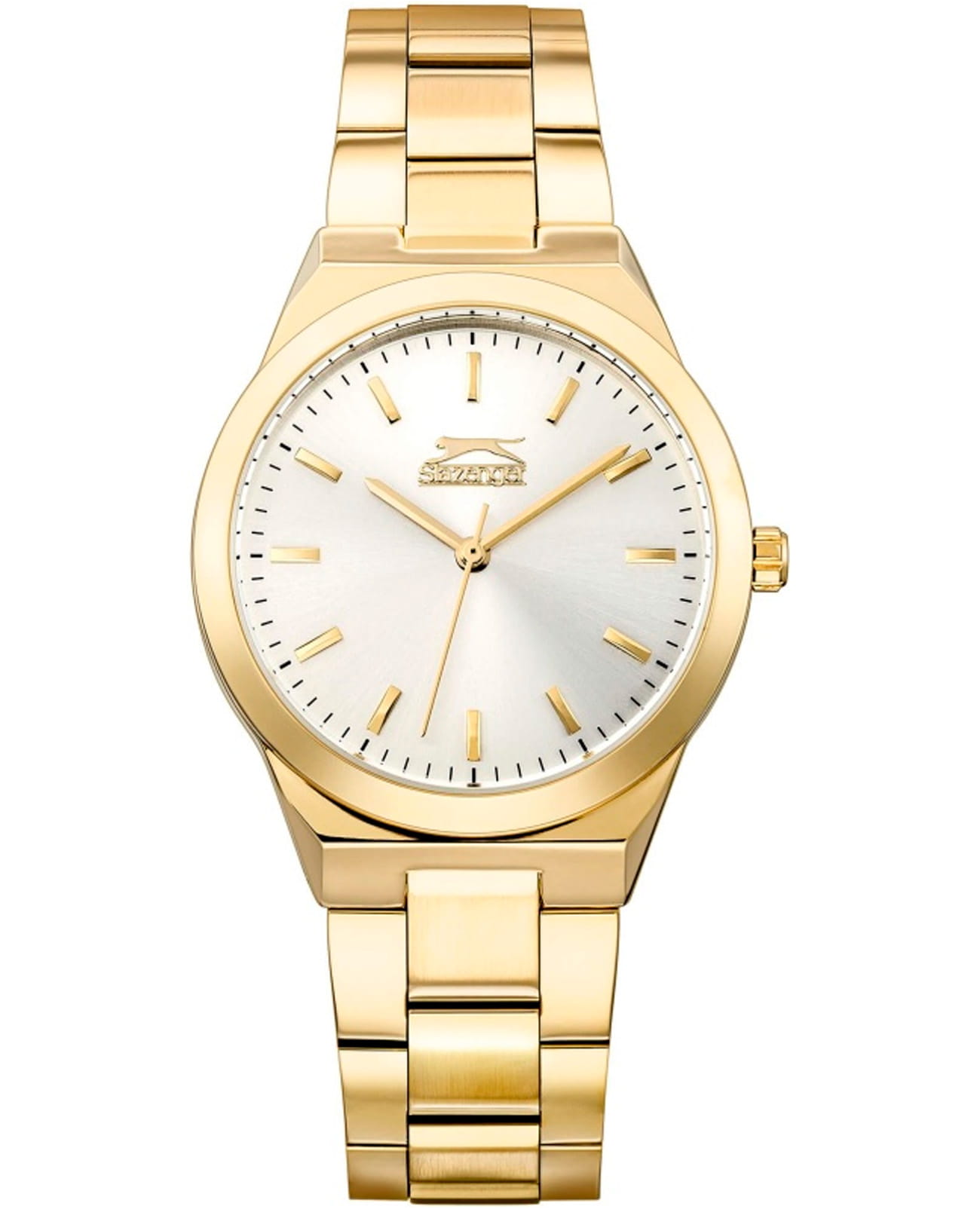 Женские наручные часы Slazenger SL.09.2075.3.02 сочетают в себе элегантный дизайн и функциональность. Модель обладает круглым корпусом диаметром 34 мм, изготовленным из суперметалла с IP-покрытиемIP-покрытиеМетод ионного напыления. Демонстрирует повышенную устойчивость к истиранию, окислению и химическим веществам. Под воздействием высокого давления и температуры около 1500°C молекулы металла надёжно соединяются с частицами корпуса часов., что обеспечивает высокую устойчивость к внешним воздействиям. Браслет выполнен из того же материала с раскладной застежкойРаскладной замокДанный вариант застежки используется только на часах с металлическим браслетом. Отличительная особенность такого крепления в том, что длина браслета становится универсальной и вы можете самостоятельно отрегулировать нужный вам размер – застежка просто двигается по браслету часов., гарантирующем комфортное ношение и безопасность. Для защиты используется минеральное стеклоМинеральное стеклоМинеральное стекло представляет собой искусственно выращенный минерал кварца. Такое стекло отличается особой устойчивостью к повреждениям и царапинам. Уступает по некоторым качествам сапфировому стеклу., обеспечивающее прочную защиту от царапин. Часы работают на кварцевом механизме, что гарантирует точное время без необходимости подзаводки. Водонепроницаемость достигает 3 атмосфер (WR30), что позволяет использовать их при контакте с брызгами воды, однако не рекомендуется для плавания или дайвинга.