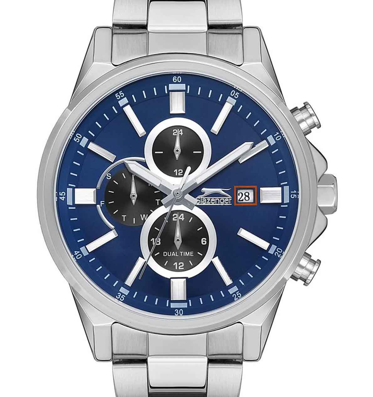 Часы Slazenger SL.09.2139.2.02 воплощают в себе элегантность и практичность, идеально подходящие для современных мужчин. Их синий циферблат защищен минеральным стекломМинеральное стеклоМинеральное стекло представляет собой искусственно выращенный минерал кварца. Такое стекло отличается особой устойчивостью к повреждениям и царапинам. Уступает по некоторым качествам сапфировому стеклу. и заключен в серебристый корпус диаметром 46 мм, который изготовлен из прочного суперметалла. Часы оснащены указателями второго часового пояса, дня недели и текущего времени в 24-х часовом формате на дополнительных малых циферблатах. Окошко даты расположено в положении 3 часов. Стрелки и метки имеют люминесцентное покрытиеЛюминесцентное покрытиеПозволяет считывать показания времени в темноте. Производители наносят на стрелки, часовые индексы, безель или поверхность циферблата светонакопительный состав, дающий холодное свечение., что позволяет легко считывать время в темноте. Надежный кварцевый механизм обеспечивает точность, а водозащита 5 ATM делает их устойчивыми к воздействию воды. Браслет из суперметалла имеет раскладную застёжкуРаскладная застёжкаТакой тип застёжки используется только на браслетах из металла. Она никогда не раскрывается полностью, происходит разделение на 2 и более частей. Раскладывающая застёжка снизит вероятность потери часов к минимуму., что подчеркивает современный стиль и позволяет легко снимать часы. Ширина ремешка 22 мм.