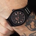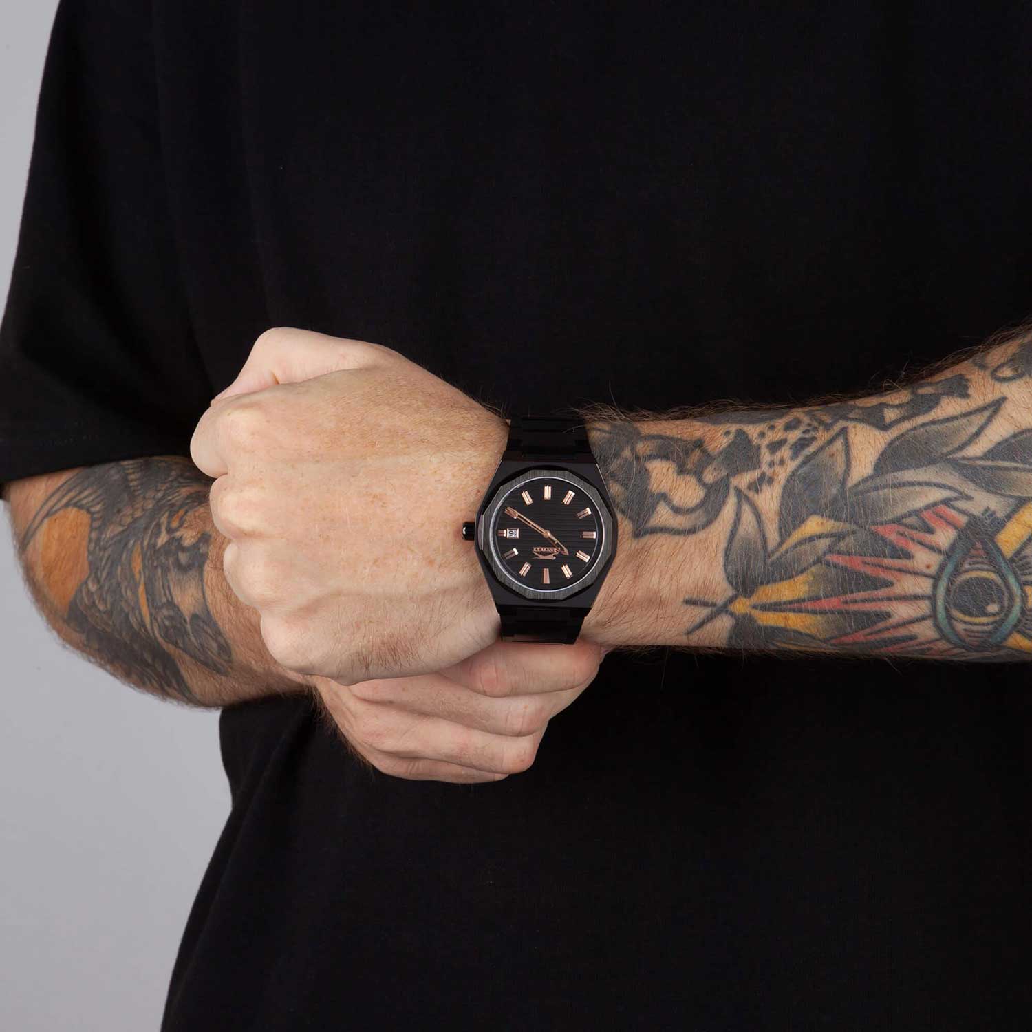 Часы Slazenger SL.09.2143.1.02 воплощают в себе элегантность и практичность, идеально подходящие для современных мужчин. Их черный циферблат защищен минеральным стекломМинеральное стеклоМинеральное стекло представляет собой искусственно выращенный минерал кварца. Такое стекло отличается особой устойчивостью к повреждениям и царапинам. Уступает по некоторым качествам сапфировому стеклу. и заключен в черный матовый корпус диаметром 41,5 мм, который изготовлен из прочного суперметалла с IP-покрытиемIP-покрытиеМетод ионного напыления. Демонстрирует повышенную устойчивость к истиранию, окислению и химическим веществам. Под воздействием высокого давления и температуры около 1500°C молекулы металла надёжно соединяются с частицами корпуса часов.. Окошко даты расположено в положении 3 часов. Надежный кварцевый механизм обеспечивает точность, а водозащита 5 ATM делает их устойчивыми к воздействию воды. Браслет из суперметалла с IP-покрытиемIP-покрытиеМетод ионного напыления. Демонстрирует повышенную устойчивость к истиранию, окислению и химическим веществам. Под воздействием высокого давления и температуры около 1500°C молекулы металла надёжно соединяются с частицами корпуса часов. имеет раскладную застёжкуРаскладная застёжкаТакой тип застёжки используется только на браслетах из металла. Она никогда не раскрывается полностью, происходит разделение на 2 и более частей. Раскладывающая застёжка снизит вероятность потери часов к минимуму., что подчеркивает современный стиль и позволяет легко снимать часы. Ширина браслета 22-26 мм.