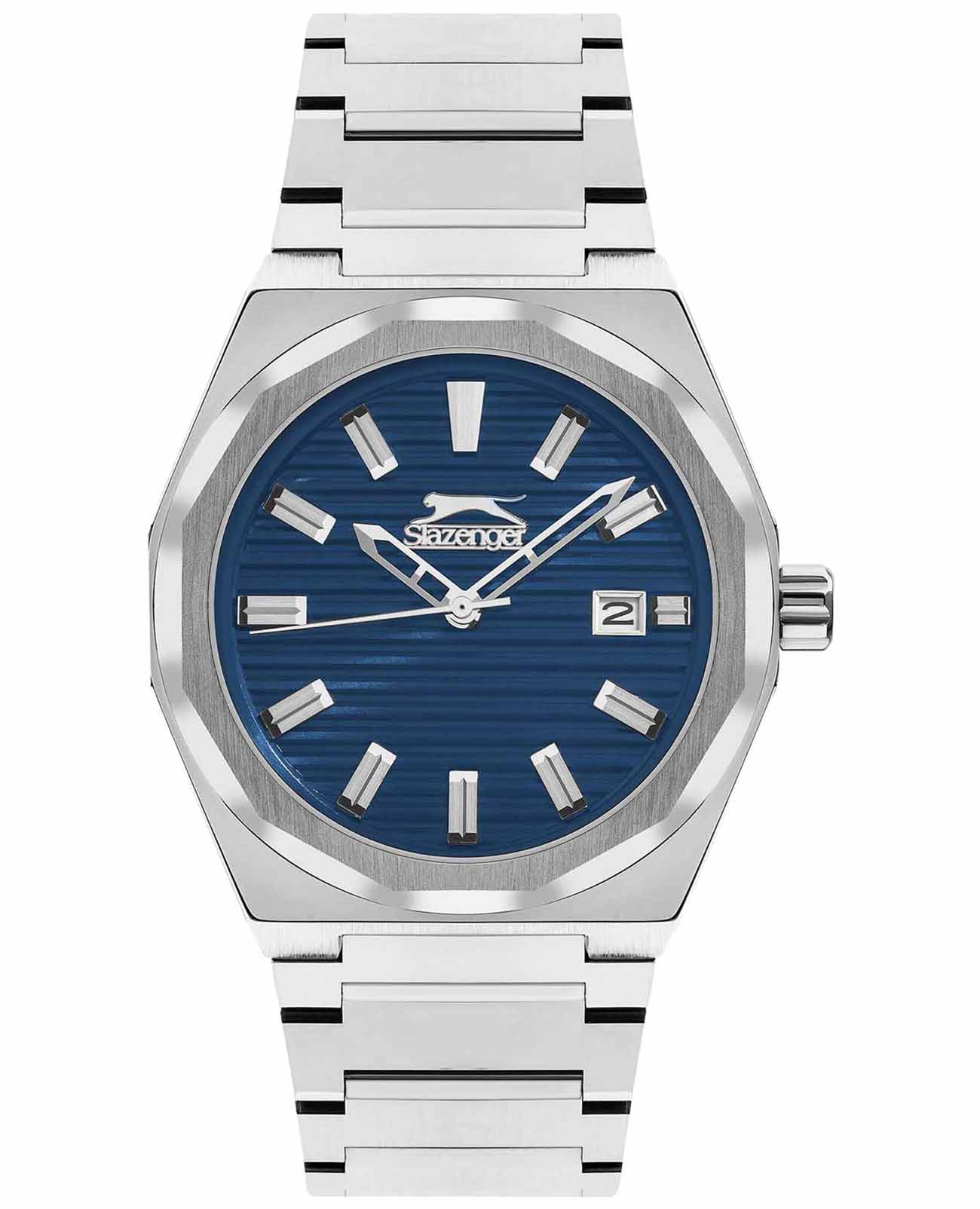 Часы Slazenger SL.09.2143.1.05 воплощают в себе элегантность и практичность, идеально подходящие для современных мужчин. Их синий циферблат защищен минеральным стекломМинеральное стеклоМинеральное стекло представляет собой искусственно выращенный минерал кварца. Такое стекло отличается особой устойчивостью к повреждениям и царапинам. Уступает по некоторым качествам сапфировому стеклу. и заключен в серебристый корпус диаметром 41,5 мм, который изготовлен из прочного суперметалла. Окошко даты расположено в положении 3 часов. Надежный кварцевый механизм обеспечивает точность, а водозащита 5 ATM делает их устойчивыми к воздействию воды. Браслет из суперметалла имеет раскладную застёжкуРаскладная застёжкаТакой тип застёжки используется только на браслетах из металла. Она никогда не раскрывается полностью, происходит разделение на 2 и более частей. Раскладывающая застёжка снизит вероятность потери часов к минимуму., что подчеркивает современный стиль и позволяет легко снимать часы. Ширина браслета 22-26 мм.