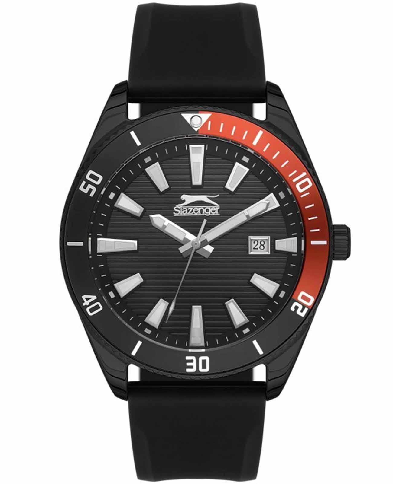 Мужские наручные часы Slazenger SL.09.2174.2.01 — стильный аксессуар с ярко выраженными спортивными чертами, который станет надежным спутником в повседневной жизни. Эти часы оснащены кварцевым механизмом, обеспечивающим высокую точность хода. Металлический корпус с черным IP-покрытиемIP-покрытиеМетод ионного напыления. Демонстрирует повышенную устойчивость к истиранию, окислению и химическим веществам. Под воздействием высокого давления и температуры около 1500°C молекулы металла надёжно соединяются с частицами корпуса часов. в сочетании с черным силиконовый ремешком на классической застежке шириной 22 мм создает гармоничный и современный образ. Диаметр корпуса составляет 44 мм, а толщина — 14 мм, что придает часам стильный и выразительный вид. Вращающийся безельБезельВнешний ободок, закрепляющий стекло. В спортивных часах так называется поворотное кольцо с делениями на циферблате, выполняет роль таймера – замеряет отрезки времени на шкале. Неподвижный безель – элемент декора. Однонаправленно вращающийся безель на дайверских часах позволяет фиксировать моменты погружения и выныривания на поверхность. с черным и красным IP-покрытиемIP-покрытиеМетод ионного напыления. Демонстрирует повышенную устойчивость к истиранию, окислению и химическим веществам. Под воздействием высокого давления и температуры около 1500°C молекулы металла надёжно соединяются с частицами корпуса часов., что придает ему дополнительную прочность и устойчивость к износу. Минеральное стеклоМинеральное стеклоМинеральное стекло представляет собой искусственно выращенный минерал кварца. Такое стекло отличается особой устойчивостью к повреждениям и царапинам. Уступает по некоторым качествам сапфировому стеклу. защищает циферблат от царапин и внешних воздействий, а водозащита уровня WR 50 позволяет не беспокоиться о случайных контактах с водой, будь то дождь или мытье рук. Часы также оснащены функцией отображения даты в отдельном окошке, что добавляет удобства в ежедневном использовании. Люминесцентное покрытиеЛюминесцентное покрытиеПозволяет считывать показания времени в темноте. Производители наносят на стрелки, часовые индексы, безель или поверхность циферблата светонакопительный состав, дающий холодное свечение. на стрелках и метках обеспечивает отличную видимость в темноте.