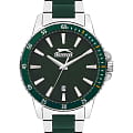 Часы Slazenger SL.09.2219.1.04 представляют собой стильное и функциональное аксессуарное решение для современных мужчин. Этот английский бренд предлагает кварцевый механизм, обеспечивающий точность хода и надежность в использовании. Корпус из металла и минеральное стеклоМинеральное стеклоМинеральное стекло представляет собой искусственно выращенный минерал кварца. Такое стекло отличается особой устойчивостью к повреждениям и царапинам. Уступает по некоторым качествам сапфировому стеклу. придают часам прочность и износостойкость, а водозащита уровня WR 30 позволяет не беспокоиться о случайных брызгах и дождевых каплях. БезельБезельВнешний ободок, закрепляющий стекло. В спортивных часах так называется поворотное кольцо с делениями на циферблате, выполняет роль таймера – замеряет отрезки времени на шкале. Неподвижный безель – элемент декора. Однонаправленно вращающийся безель на дайверских часах позволяет фиксировать моменты погружения и выныривания на поверхность. с зеленым IP-покрытиемIP-покрытиеМетод ионного напыления. Демонстрирует повышенную устойчивость к истиранию, окислению и химическим веществам. Под воздействием высокого давления и температуры около 1500°C молекулы металла надёжно соединяются с частицами корпуса часов. придаёт аксессуару современный вид и дополнительную прочность. Металлический браслет с комбинированными элементами и зелеными силиконовыми вставками обеспечивает комфортное ношение и надежную фиксацию на запястье, а раскладная застёжкаРаскладная застёжкаТакой тип застёжки используется только на браслетах из металла. Она никогда не раскрывается полностью, происходит разделение на 2 и более частей. Раскладывающая застёжка снизит вероятность потери часов к минимуму. облегчает процесс надевания.  Диаметр корпуса составляет 45 мм, а толщина — 12 мм, что делает модель выразительной и заметной на руке, при этом она сохраняет элегантность и изысканность. На зеленом циферблате присутствует окошко даты, что добавляет практичности в повседневное использование. Заводная головка оснащена защитой, обеспечивая дополнительную долговечность. Вес часов составляет 148 грамм, что делает их достаточно легкими для комфортного ношения в течение всего дня.