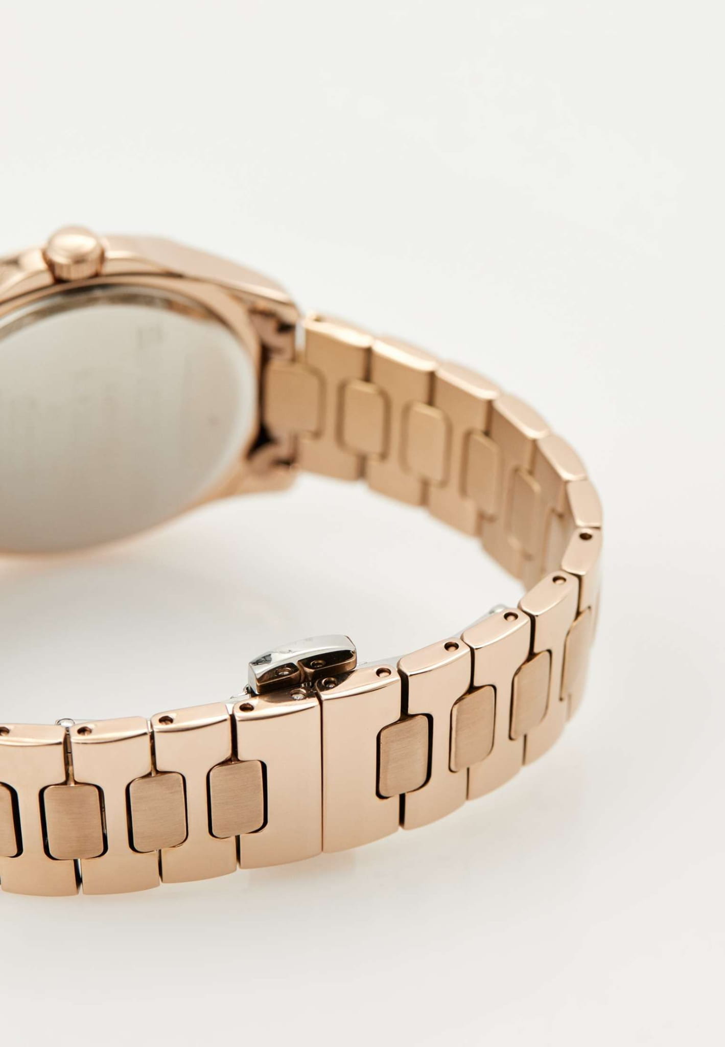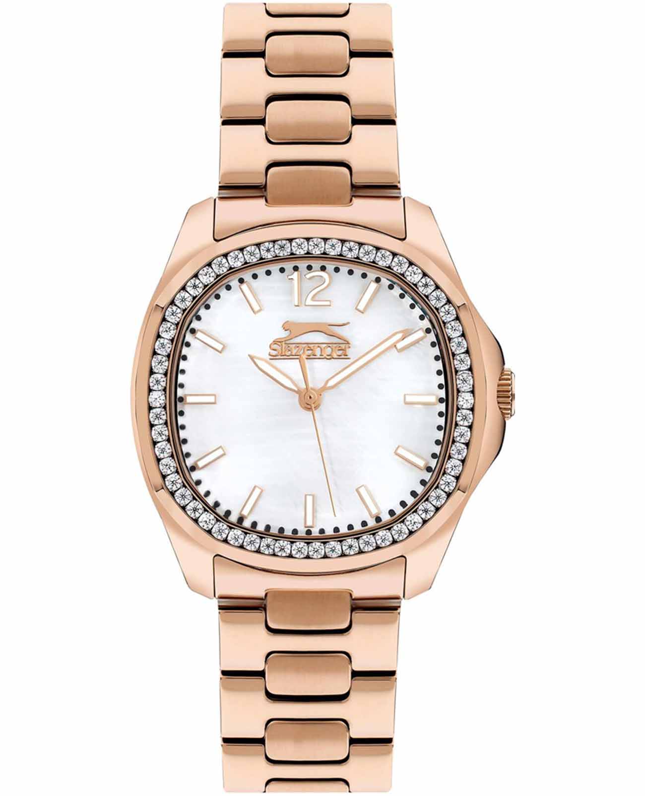 Часы Slazenger SL.09.2238.3.02 – это изысканный аксессуар, который станет стильным акцентом любого образа. Модель оснащена надежным кварцевым механизмом. Корпус из прочного металла с розово-золотистым IP-покрытиемIP-покрытиеМетод ионного напыления. Демонстрирует повышенную устойчивость к истиранию, окислению и химическим веществам. Под воздействием высокого давления и температуры около 1500°C молекулы металла надёжно соединяются с частицами корпуса часов. размером 34х34 мм украшен россыпью сверкающих фианитов по безелюБезельВнешний ободок, закрепляющий стекло. В спортивных часах так называется поворотное кольцо с делениями на циферблате, выполняет роль таймера – замеряет отрезки времени на шкале. Неподвижный безель – элемент декора. Однонаправленно вращающийся безель на дайверских часах позволяет фиксировать моменты погружения и выныривания на поверхность., что придает часам особое сияние и элегантность. Белый перламутровый циферблат с логотипом бренда защищен стойким к царапинам минеральным стекломМинеральное стеклоМинеральное стекло представляет собой искусственно выращенный минерал кварца. Такое стекло отличается особой устойчивостью к повреждениям и царапинам. Уступает по некоторым качествам сапфировому стеклу.. Четкие часовые метки в виде лаконичных штрихов и крупная арабская цифра 12 обеспечивают удобство чтения времени. Заводная головка с рифлением дополнена защитой для повышения долговечности. Металлический браслет с розово-золотистым IP-покрытиемIP-покрытиеМетод ионного напыления. Демонстрирует повышенную устойчивость к истиранию, окислению и химическим веществам. Под воздействием высокого давления и температуры около 1500°C молекулы металла надёжно соединяются с частицами корпуса часов. шириной 18 мм надежно фиксируется на запястье с помощью застежки «бабочка»Застёжка "бабочка"Такой вид застёжки дополняется предохранителями, помогающими избежать случайного раскрытия браслета. Обладают изящным исполнением. . Для удобства использования в темное время суток предусмотрено люминесцентное покрытиеЛюминесцентное покрытиеПозволяет считывать показания времени в темноте. Производители наносят на стрелки, часовые индексы, безель или поверхность циферблата светонакопительный состав, дающий холодное свечение. стрелок. Водозащита 30WR позволяет не беспокоиться о случайных брызгах. Вес изделия составляет 92 грамма, что делает часы комфортными для ежедневного ношения. Эти часы идеально подойдут для тех, кто ценит гармонию стиля, качества и функциональности.