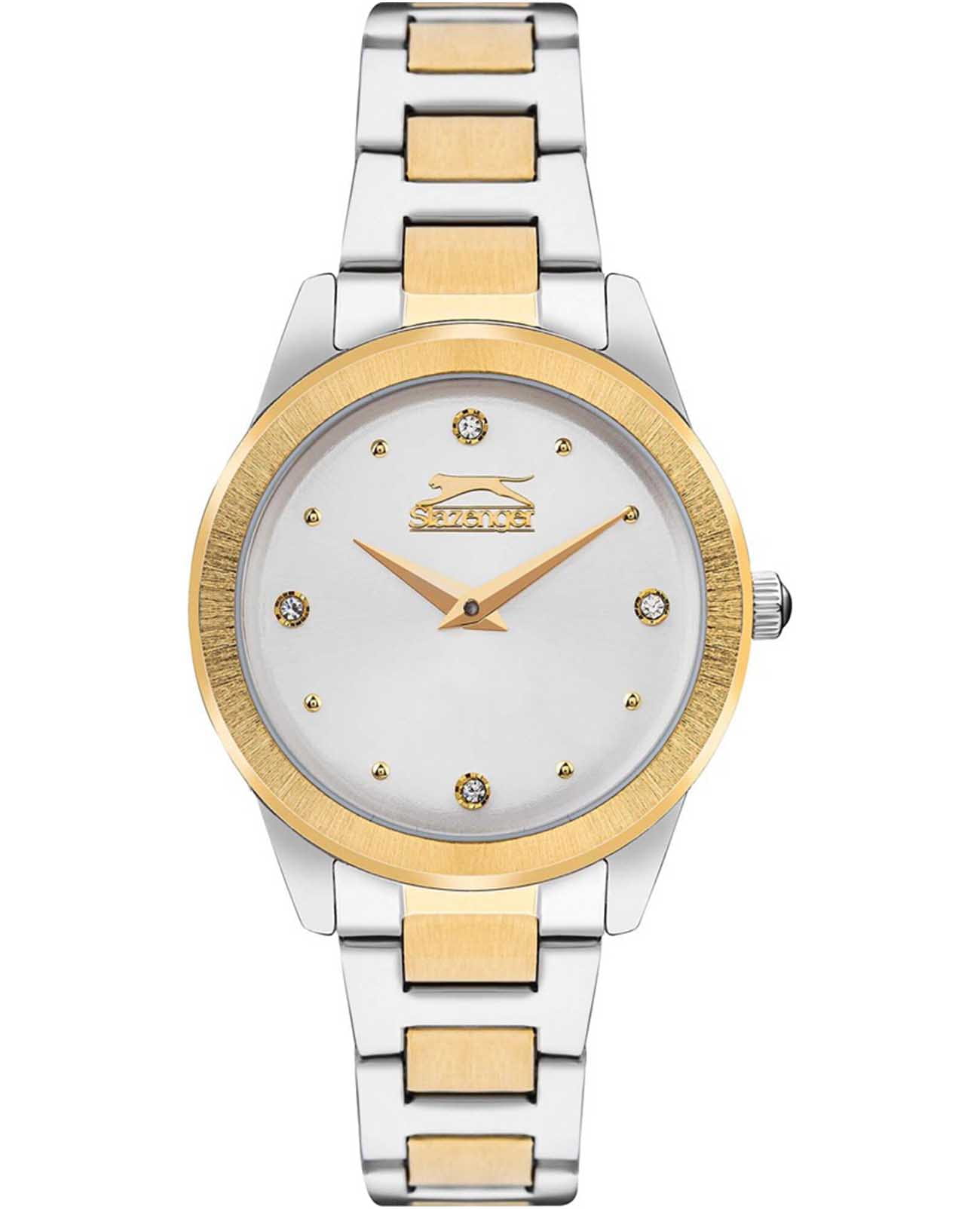Часы Slazenger SL.09.2253.3.02 — это стильная и элегантная модель, созданная для тех, кто ценит утонченность и надежность. Корпус выполнен из прочного металла, а изящный серебристый браслет с частичным золотистым IP-покрытиемIP-покрытиеМетод ионного напыления. Демонстрирует повышенную устойчивость к истиранию, окислению и химическим веществам. Под воздействием высокого давления и температуры около 1500°C молекулы металла надёжно соединяются с частицами корпуса часов. оснащен удобной раскладной застёжкойРаскладная застёжкаТакой тип застёжки используется только на браслетах из металла. Она никогда не раскрывается полностью, происходит разделение на 2 и более частей. Раскладывающая застёжка снизит вероятность потери часов к минимуму.. На безельБезельВнешний ободок, закрепляющий стекло. В спортивных часах так называется поворотное кольцо с делениями на циферблате, выполняет роль таймера – замеряет отрезки времени на шкале. Неподвижный безель – элемент декора. Однонаправленно вращающийся безель на дайверских часах позволяет фиксировать моменты погружения и выныривания на поверхность. нанесено золотистое IP-покрытиеIP-покрытиеМетод ионного напыления. Демонстрирует повышенную устойчивость к истиранию, окислению и химическим веществам. Под воздействием высокого давления и температуры около 1500°C молекулы металла надёжно соединяются с частицами корпуса часов.. Минеральное стеклоМинеральное стеклоМинеральное стекло представляет собой искусственно выращенный минерал кварца. Такое стекло отличается особой устойчивостью к повреждениям и царапинам. Уступает по некоторым качествам сапфировому стеклу. защищает серебристый циферблат, украшенный сияющими кристаллами, придающими аксессуару особый шарм. Кварцевый механизм обеспечивает точность хода, а водозащита класса WR 30 позволяет не беспокоиться о случайных брызгах. Диаметр корпуса составляет 33 мм, ширина браслета — 16 мм, толщина корпуса — 8 мм, что делает эти часы аккуратными и комфортными для повседневной носки. Модель весит 70 грамм. Часы прекрасно дополнят как деловой, так и повседневный образ, подчеркивая индивидуальность своей обладательницы.