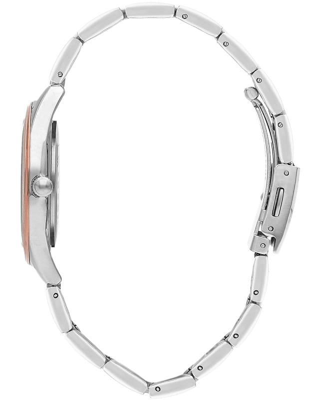 Часы Slazenger SL.09.2253.3.03 — это стильная и элегантная модель, созданная для тех, кто ценит утонченность и надежность. Корпус выполнен из прочного металла, а изящный серебристый браслет с частичным розово-золотистым IP-покрытиемIP-покрытиеМетод ионного напыления. Демонстрирует повышенную устойчивость к истиранию, окислению и химическим веществам. Под воздействием высокого давления и температуры около 1500°C молекулы металла надёжно соединяются с частицами корпуса часов. оснащён удобной раскладной застёжкойРаскладная застёжкаТакой тип застёжки используется только на браслетах из металла. Она никогда не раскрывается полностью, происходит разделение на 2 и более частей. Раскладывающая застёжка снизит вероятность потери часов к минимуму.. На безельБезельВнешний ободок, закрепляющий стекло. В спортивных часах так называется поворотное кольцо с делениями на циферблате, выполняет роль таймера – замеряет отрезки времени на шкале. Неподвижный безель – элемент декора. Однонаправленно вращающийся безель на дайверских часах позволяет фиксировать моменты погружения и выныривания на поверхность. нанесено розово-золотистое IP-покрытиеIP-покрытиеМетод ионного напыления. Демонстрирует повышенную устойчивость к истиранию, окислению и химическим веществам. Под воздействием высокого давления и температуры около 1500°C молекулы металла надёжно соединяются с частицами корпуса часов..  Минеральное стеклоМинеральное стеклоМинеральное стекло представляет собой искусственно выращенный минерал кварца. Такое стекло отличается особой устойчивостью к повреждениям и царапинам. Уступает по некоторым качествам сапфировому стеклу. защищает серебристый циферблат, украшенный сияющими кристаллами, придающими аксессуару особый шарм. Кварцевый механизм обеспечивает точность хода, а водозащита класса WR 30 позволяет не беспокоиться о случайных брызгах. Диаметр корпуса составляет 33 мм, ширина браслета — 16 мм, толщина корпуса — 8 мм, что делает эти часы аккуратными и комфортными для повседневной носки. Модель весит 70 грамм. Часы прекрасно дополнят как деловой, так и повседневный образ, подчеркивая индивидуальность своей обладательницы.