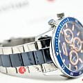 Часы Slazenger SL.09.2260.2.06 сочетают в себе выразительный дизайн и практичность, делая их отличным выбором для современного мужчины. Корпус и браслет выполнены из суперметалла — прочного сплава на основе меди с низким содержанием цинка и никеля, что обеспечивает долговечность изделия. На безельБезельВнешний ободок, закрепляющий стекло. В спортивных часах так называется поворотное кольцо с делениями на циферблате, выполняет роль таймера – замеряет отрезки времени на шкале. Неподвижный безель – элемент декора. Однонаправленно вращающийся безель на дайверских часах позволяет фиксировать моменты погружения и выныривания на поверхность. нанесено синее IP-покрытиеIP-покрытиеМетод ионного напыления. Демонстрирует повышенную устойчивость к истиранию, окислению и химическим веществам. Под воздействием высокого давления и температуры около 1500°C молекулы металла надёжно соединяются с частицами корпуса часов., что придает аксессуару утончённый и универсальный внешний вид. Модель оснащена точным кварцевым механизмом, защищённым минеральным стекломМинеральное стеклоМинеральное стекло представляет собой искусственно выращенный минерал кварца. Такое стекло отличается особой устойчивостью к повреждениям и царапинам. Уступает по некоторым качествам сапфировому стеклу.. На синем циферблате размещены дополнительные индикаторы: 24-часовой формат времени, дата и день недели. Класс водозащиты 5 бар позволяет не беспокоиться о брызгах и дожде. Диаметр корпуса составляет 45 мм, толщина — 12 мм, что придаёт часам солидный и современный вид. Стрелки с люминесцентным покрытиемЛюминесцентное покрытиеПозволяет считывать показания времени в темноте. Производители наносят на стрелки, часовые индексы, безель или поверхность циферблата светонакопительный состав, дающий холодное свечение. удобно подсвечиваются в темноте после зарядки на свету. Стальной браслет с синим IP-покрытиемIP-покрытиеМетод ионного напыления. Демонстрирует повышенную устойчивость к истиранию, окислению и химическим веществам. Под воздействием высокого давления и температуры около 1500°C молекулы металла надёжно соединяются с частицами корпуса часов. с раскладной застёжкойРаскладная застёжкаТакой тип застёжки используется только на браслетах из металла. Она никогда не раскрывается полностью, происходит разделение на 2 и более частей. Раскладывающая застёжка снизит вероятность потери часов к минимуму. обеспечивает комфортную посадку. Модель станет надёжным спутником как на каждый день, так и для особых случаев, а также превосходно подойдёт в качестве подарка. Гарантия от производителя — 12 месяцев.