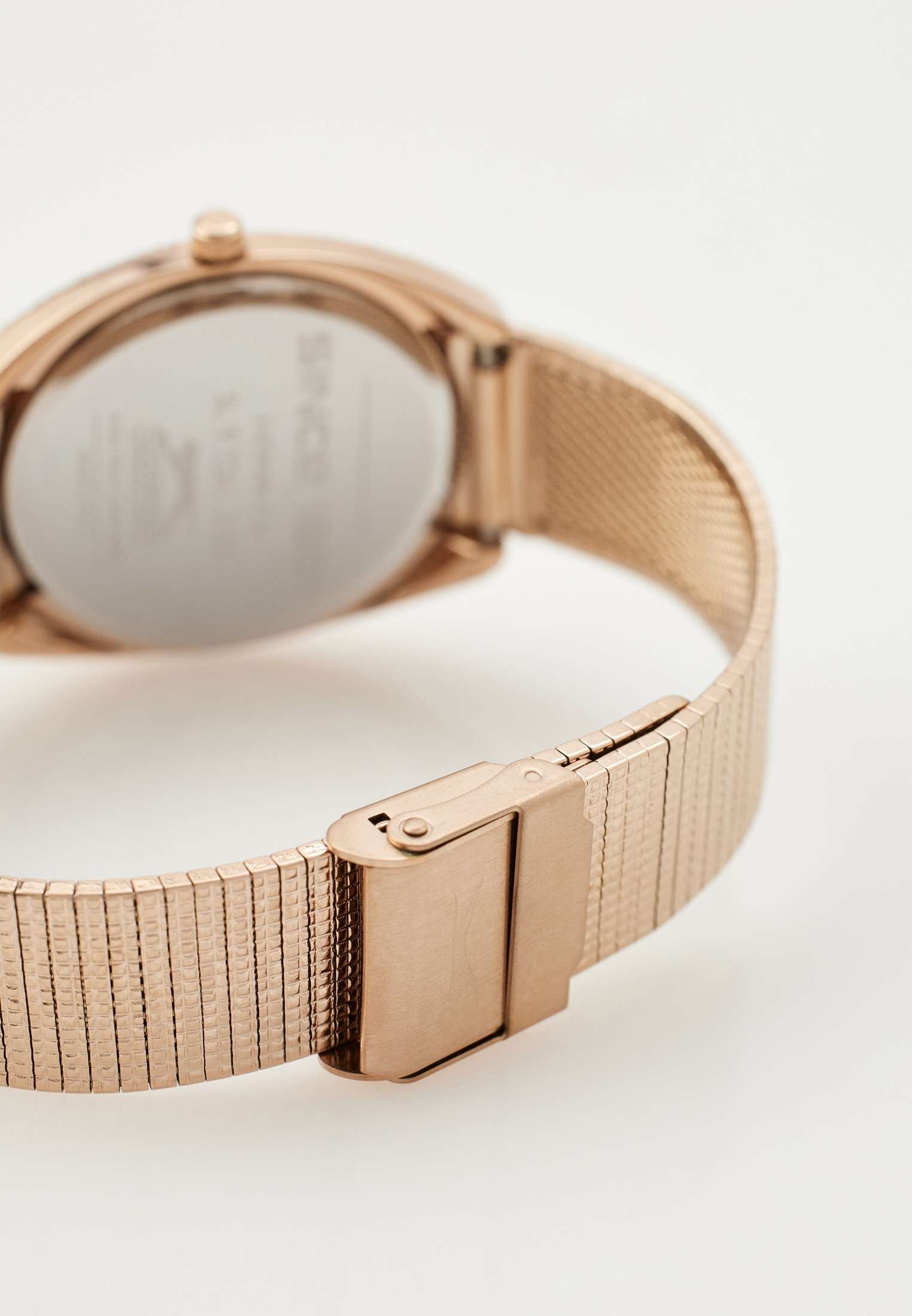Часы Slazenger SL.09.2261.3.02 — это утонченное сочетание современного дизайна и классической элегантности. Изделие оснащено надежным кварцевым механизмом, который обеспечивает точность хода и простоту эксплуатации. Корпус из суперметалла с розово-золотистым IP-покрытиемIP-покрытиеМетод ионного напыления. Демонстрирует повышенную устойчивость к истиранию, окислению и химическим веществам. Под воздействием высокого давления и температуры около 1500°C молекулы металла надёжно соединяются с частицами корпуса часов. гармонично сочетается с металлическим браслетом аналогичного оттенка и покрытия, подчеркивая изысканность аксессуара и его актуальность в модных тенденциях. Золотистый розовый циферблат украшен изысканным гильоше Clous de Paris и дополнен лаконичными метками в виде штрихов, а также фирменным логотипом бренда. Минеральное стеклоМинеральное стеклоМинеральное стекло представляет собой искусственно выращенный минерал кварца. Такое стекло отличается особой устойчивостью к повреждениям и царапинам. Уступает по некоторым качествам сапфировому стеклу. надежно защищает циферблат от случайных царапин. Диаметр корпуса составляет 34 мм, толщина — 8 мм, ширина браслета — 18 мм, а вес часов — всего 54 г, благодаря чему аксессуар удобно сидит на запястье. Стальной браслет c раскладным замкомРаскладной замокДанный вариант застежки используется только на часах с металлическим браслетом. Отличительная особенность такого крепления в том, что длина браслета становится универсальной и вы можете самостоятельно отрегулировать нужный вам размер – застежка просто двигается по браслету часов. удобно фиксируется на запястье и подчёркивает современный характер часов. Водозащита 30WR позволяет не беспокоиться о случайных брызгах. Модель отличается отсутствием секундной стрелки и оснащена рифленой заводной головкой для легкой корректировки времени. Эти часы станут стильным завершением любого образа, подчеркивая индивидуальность и чувство вкуса обладателя.
