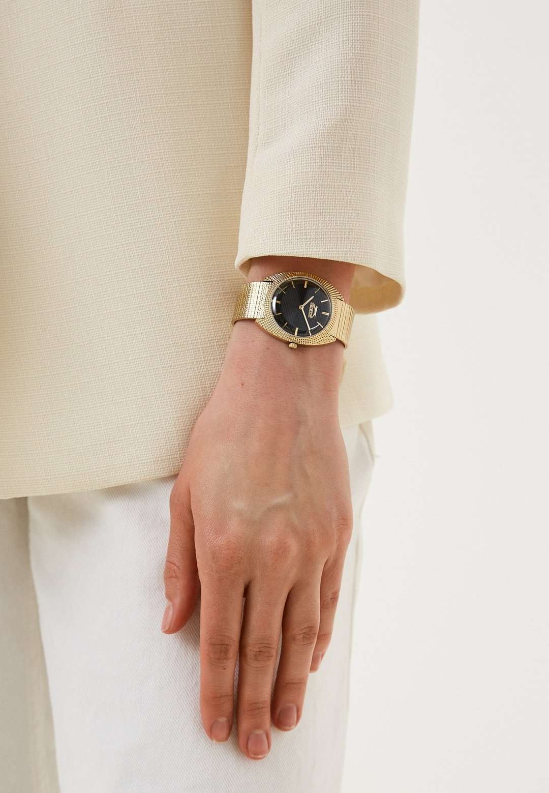 Часы Slazenger SL.09.2261.3.06 — это утонченное сочетание современного дизайна и классической элегантности. Изделие оснащено надежным кварцевым механизмом, который обеспечивает точность хода и простоту эксплуатации. Корпус из суперметалла с золотистым IP-покрытиемIP-покрытиеМетод ионного напыления. Демонстрирует повышенную устойчивость к истиранию, окислению и химическим веществам. Под воздействием высокого давления и температуры около 1500°C молекулы металла надёжно соединяются с частицами корпуса часов. гармонично сочетается с металлическим браслетом аналогичного оттенка и покрытия, подчеркивая изысканность аксессуара и его актуальность в модных тенденциях. Черный циферблат украшен изысканным гильоше Clous de Paris и дополнен лаконичными метками в виде штрихов, а также фирменным логотипом бренда. Минеральное стеклоМинеральное стеклоМинеральное стекло представляет собой искусственно выращенный минерал кварца. Такое стекло отличается особой устойчивостью к повреждениям и царапинам. Уступает по некоторым качествам сапфировому стеклу. надежно защищает циферблат от случайных царапин. Диаметр корпуса составляет 34 мм, толщина — 8 мм, ширина браслета — 18 мм, а вес часов — всего 54 г, благодаря чему аксессуар удобно сидит на запястье. Стальной браслет c раскладным замкомРаскладной замокДанный вариант застежки используется только на часах с металлическим браслетом. Отличительная особенность такого крепления в том, что длина браслета становится универсальной и вы можете самостоятельно отрегулировать нужный вам размер – застежка просто двигается по браслету часов. удобно фиксируется на запястье и подчёркивает современный характер часов. Водозащита 30WR позволяет не беспокоиться о случайных брызгах. Модель отличается отсутствием секундной стрелки и оснащена рифленой заводной головкой для легкой корректировки времени. Эти часы станут стильным завершением любого образа, подчеркивая индивидуальность и чувство вкуса обладателя.