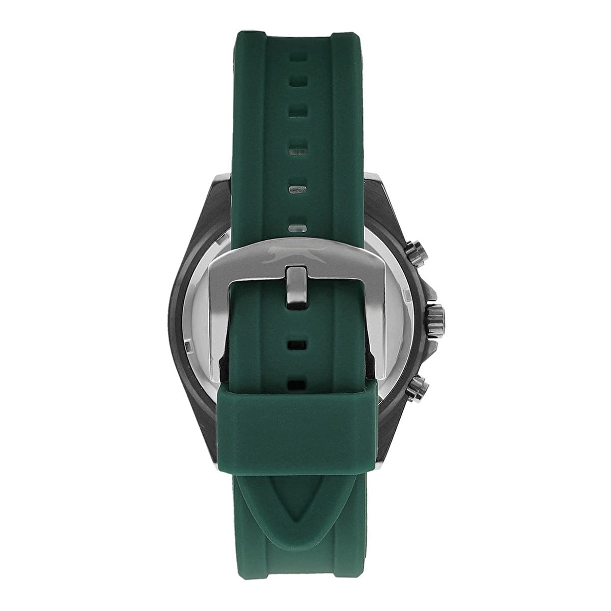 Часы Slazenger SL.09.2274.2.03 сочетают в себе современный стиль и надежность. Круглый корпус диаметром 44 мм выполнен из суперметалла с черным IP-покрытиемIP-покрытиеМетод ионного напыления. Демонстрирует повышенную устойчивость к истиранию, окислению и химическим веществам. Под воздействием высокого давления и температуры около 1500°C молекулы металла надёжно соединяются с частицами корпуса часов., что придает модели выразительный и элегантный вид. Черный циферблат с логотипом бренда защищен прочным минеральным стекломМинеральное стеклоМинеральное стекло представляет собой искусственно выращенный минерал кварца. Такое стекло отличается особой устойчивостью к повреждениям и царапинам. Уступает по некоторым качествам сапфировому стеклу., рифленый сатинированный безельБезельВнешний ободок, закрепляющий стекло. В спортивных часах так называется поворотное кольцо с делениями на циферблате, выполняет роль таймера – замеряет отрезки времени на шкале. Неподвижный безель – элемент декора. Однонаправленно вращающийся безель на дайверских часах позволяет фиксировать моменты погружения и выныривания на поверхность. с зеленым IP-покрытиемIP-покрытиеМетод ионного напыления. Демонстрирует повышенную устойчивость к истиранию, окислению и химическим веществам. Под воздействием высокого давления и температуры около 1500°C молекулы металла надёжно соединяются с частицами корпуса часов. украшен минутными отметками. На дополнительных циферблатах отображаются дата, день недели и время в 12- и 24-часовом формате. Надежный кварцевый механизм обеспечивает точность хода. Силиконовый зеленый ремешок шириной 22 мм удобно фиксируется на запястье с помощью классической застежки. Стрелки и метки с люминесцентным покрытиемЛюминесцентное покрытиеПозволяет считывать показания времени в темноте. Производители наносят на стрелки, часовые индексы, безель или поверхность циферблата светонакопительный состав, дающий холодное свечение. удобно подсвечиваются в темноте после зарядки на свету. Водозащита 50WR позволяет использовать часы в повседневной жизни, а вес 90 г и толщина корпуса 12 мм делают их комфортными для ежедневного ношения.