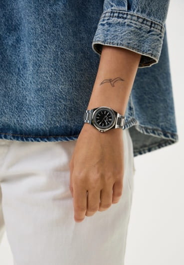 Женские кварцевые часы Slazenger SL.09.2306.3.01 — это элегантный и стильный аксессуар, идеально дополняющий любой образ. Корпус и браслет выполнены из суперметалла, защищён минеральным стекломМинеральное стеклоМинеральное стекло представляет собой искусственно выращенный минерал кварца. Такое стекло отличается особой устойчивостью к повреждениям и царапинам. Уступает по некоторым качествам сапфировому стеклу.. Циферблат чёрного цвета оформлен в классическом стиле, стрелки оснащены люминесцентным покрытиемЛюминесцентное покрытиеПозволяет считывать показания времени в темноте. Производители наносят на стрелки, часовые индексы, безель или поверхность циферблата светонакопительный состав, дающий холодное свечение., обеспечивающим хорошую читаемость в темноте. Заводная головка снабжена защитой для повышения надёжности. Браслет из суперметалла фиксируется на раскладной застёжкеРаскладная застёжкаТакой тип застёжки используется только на браслетах из металла. Она никогда не раскрывается полностью, происходит разделение на 2 и более частей. Раскладывающая застёжка снизит вероятность потери часов к минимуму., обеспечивая удобство и безопасность ношения. Водонепроницаемость 30 м позволяет использовать часы в повседневных условиях, защищая от случайных брызг и капель дождя. Модель сочетает в себе лёгкость, прочность и изысканный внешний вид.