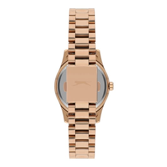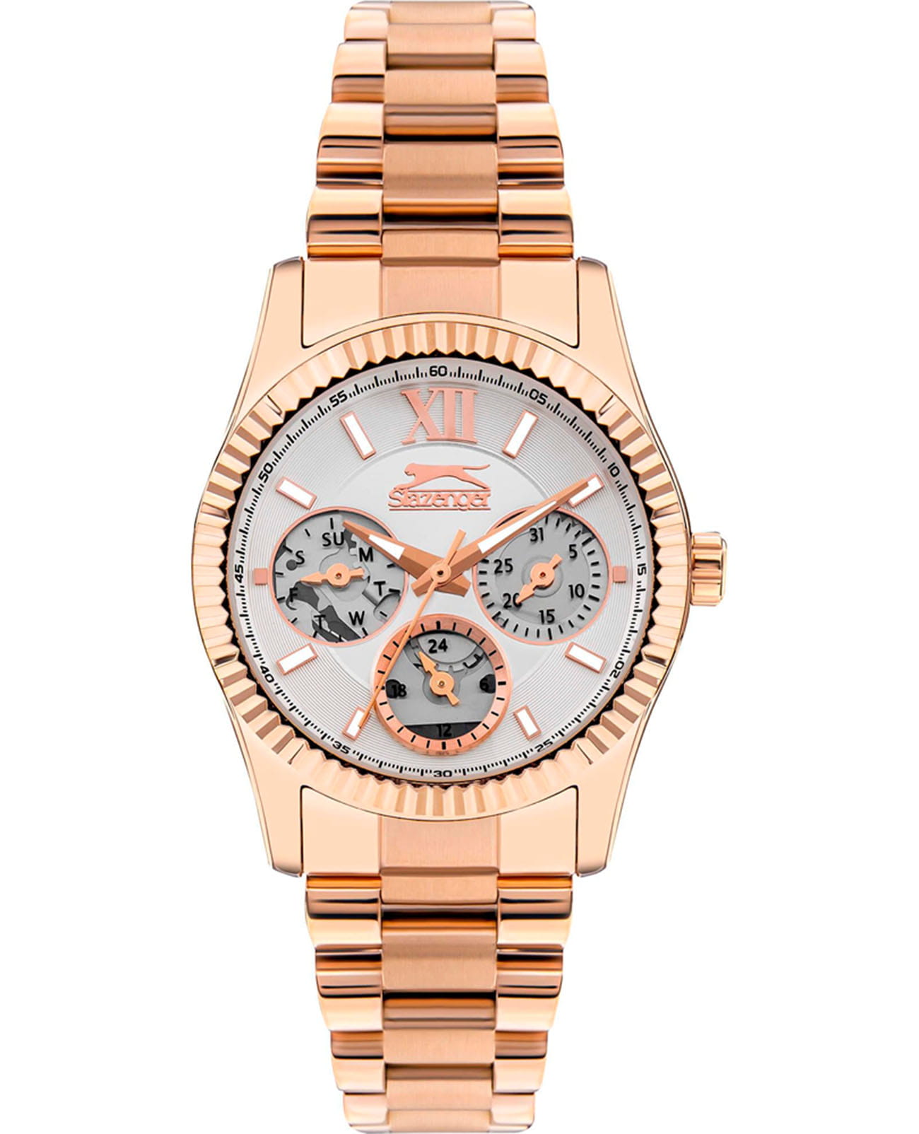 Женские кварцевые часы Slazenger SL.09.2317.4.05 - это выразительный и функциональный аксессуар, сочетающий стиль, прочность и насыщенную комплектацию. Корпус и браслет выполнены из суперметалла с IP-покрытиемIP-покрытиеМетод ионного напыления. Демонстрирует повышенную устойчивость к истиранию, окислению и химическим веществам. Под воздействием высокого давления и температуры около 1500°C молекулы металла надёжно соединяются с частицами корпуса часов.. Циферблат белого цвета защищён минеральным стекломМинеральное стеклоМинеральное стекло представляет собой искусственно выращенный минерал кварца. Такое стекло отличается особой устойчивостью к повреждениям и царапинам. Уступает по некоторым качествам сапфировому стеклу. и оформлен с вынесенными малыми циферблатами для индикации дня недели, даты и времени в 24-часовом формате. Стрелки и метки оснащены люминесцентным покрытиемЛюминесцентное покрытиеПозволяет считывать показания времени в темноте. Производители наносят на стрелки, часовые индексы, безель или поверхность циферблата светонакопительный состав, дающий холодное свечение., обеспечивающим хорошую читаемость в темноте. Браслет золотистого цвета фиксируется на раскладной застёжкеРаскладная застёжкаТакой тип застёжки используется только на браслетах из металла. Она никогда не раскрывается полностью, происходит разделение на 2 и более частей. Раскладывающая застёжка снизит вероятность потери часов к минимуму., обеспечивая удобство и надёжность ношения. Водонепроницаемость 30 м позволяет использовать часы в повседневных условиях, защищая от случайных брызг и капель дождя. Модель подчёркивает индивидуальность владельца и идеально подходит как для повседневного, так и для торжественного образа.