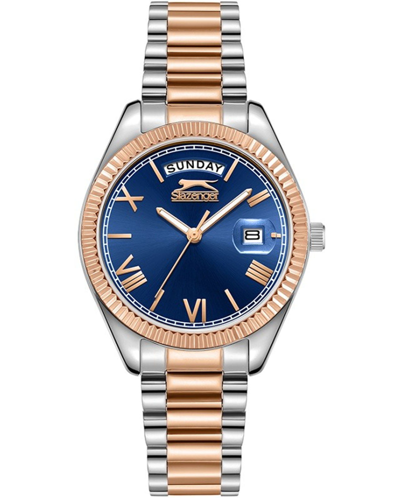 Женские элегантные наручные часы Slazenger SL.09.2338.4.07 сочетают в себе современный стиль и функциональность. Стильный корпус выполнен из суперметалла, а неповоротный безельБезельВнешний ободок, закрепляющий стекло. В спортивных часах так называется поворотное кольцо с делениями на циферблате, выполняет роль таймера – замеряет отрезки времени на шкале. Неподвижный безель – элемент декора. Однонаправленно вращающийся безель на дайверских часах позволяет фиксировать моменты погружения и выныривания на поверхность. с IP-покрытиемIP-покрытиеМетод ионного напыления. Демонстрирует повышенную устойчивость к истиранию, окислению и химическим веществам. Под воздействием высокого давления и температуры около 1500°C молекулы металла надёжно соединяются с частицами корпуса часов., придающий модели дополнительную прочность и элегантный внешний вид. Изысканный циферблат защищён минеральным стекломМинеральное стеклоМинеральное стекло представляет собой искусственно выращенный минерал кварца. Такое стекло отличается особой устойчивостью к повреждениям и царапинам. Уступает по некоторым качествам сапфировому стеклу., устойчивым к царапинам и повреждениям. Водонепроницаемость 3 АТМ позволяет использовать часы в повседневных условиях — при мытье рук или под лёгким дождём. Браслет из суперметалла с частичным IP-покрытиемIP-покрытиеМетод ионного напыления. Демонстрирует повышенную устойчивость к истиранию, окислению и химическим веществам. Под воздействием высокого давления и температуры около 1500°C молекулы металла надёжно соединяются с частицами корпуса часов. и с раскладной застёжкойРаскладная застёжкаТакой тип застёжки используется только на браслетах из металла. Она никогда не раскрывается полностью, происходит разделение на 2 и более частей. Раскладывающая застёжка снизит вероятность потери часов к минимуму., обеспечивающий надёжную фиксацию и комфорт при ношении. Окошко даты находится в положении 3 часа. Cтрелки покрыты люминесцентным покрытиемЛюминесцентное покрытиеПозволяет считывать показания времени в темноте. Производители наносят на стрелки, часовые индексы, безель или поверхность циферблата светонакопительный состав, дающий холодное свечение. для читаемости в условиях недостаточного освещения. Эта модель идеально подходит для женщин, ценящих стиль, функциональность и надёжность в одном аксессуаре.