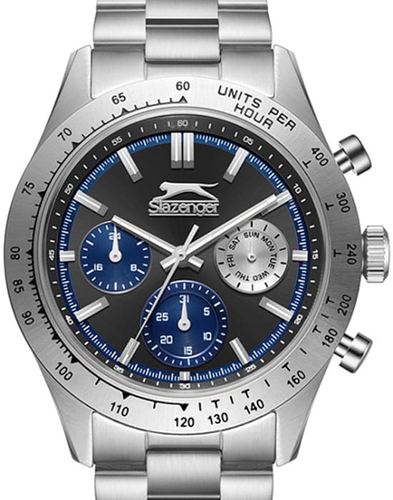 Slazenger SL.09.2358.2.01 — стильные мужские часы, сочетающие современный дизайн и функциональность. Корпус выполнен из суперметалла, а безельБезельВнешний ободок, закрепляющий стекло. В спортивных часах так называется поворотное кольцо с делениями на циферблате, выполняет роль таймера – замеряет отрезки времени на шкале. Неподвижный безель – элемент декора. Однонаправленно вращающийся безель на дайверских часах позволяет фиксировать моменты погружения и выныривания на поверхность. покрыт PVDPVDУльтратонкое покрытие наносится в технике вакуумного напыления, сочетает в себе нитрид титана особой прочности со слоем золота или оксида хрома. Несёт в себе декоративную или защитную функцию.-покрытием, придающим модели современный и элегантный вид. Минеральное стеклоМинеральное стеклоМинеральное стекло представляет собой искусственно выращенный минерал кварца. Такое стекло отличается особой устойчивостью к повреждениям и царапинам. Уступает по некоторым качествам сапфировому стеклу. защищает циферблат от царапин и гарантирует превосходную читаемость. Циферблат с контрастными метками и стрелками обеспечивает отличную видимость в любых условиях. Браслет из суперметалла обеспечивает комфортное ношение и надёжную фиксацию на запястье. Функциональность дополняется индикацией даты, дня недели и 24-часовым форматом времени. Водонепроницаемость 50 метров делает модель устойчивой к случайным брызгам, идеально подходя для повседневного использования.