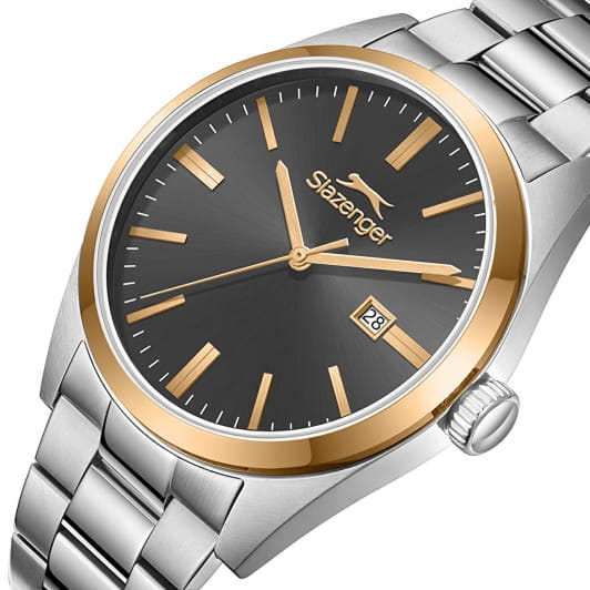 Мужские кварцевые часы Slazenger — это выразительный и функциональный аксессуар. Корпус диаметром 42 мм и толщиной 12 мм выполнен из нержавеющей стали 316L. БезельБезельВнешний ободок, закрепляющий стекло. В спортивных часах так называется поворотное кольцо с делениями на циферблате, выполняет роль таймера – замеряет отрезки времени на шкале. Неподвижный безель – элемент декора. Однонаправленно вращающийся безель на дайверских часах позволяет фиксировать моменты погружения и выныривания на поверхность. с IP-покрытиемIP-покрытиеМетод ионного напыления. Демонстрирует повышенную устойчивость к истиранию, окислению и химическим веществам. Под воздействием высокого давления и температуры около 1500°C молекулы металла надёжно соединяются с частицами корпуса часов.. Циферблат чёрного цвета оформлен индексами и стрелками. Циферблат защищён минеральным стекломМинеральное стеклоМинеральное стекло представляет собой искусственно выращенный минерал кварца. Такое стекло отличается особой устойчивостью к повреждениям и царапинам. Уступает по некоторым качествам сапфировому стеклу.. Механизм — кварцевый. Окошко даты расположено в положении 3 часов. Часы оснащены стальным браслетом с раскладной застёжкойРаскладная застёжкаТакой тип застёжки используется только на браслетах из металла. Она никогда не раскрывается полностью, происходит разделение на 2 и более частей. Раскладывающая застёжка снизит вероятность потери часов к минимуму.. Водонепроницаемость 100 м позволяет использовать часы для плавания и повседневного ношения. Гарантия — 12 месяцев. Идеальный выбор для тех, кто ценит стиль, функциональность и качество.