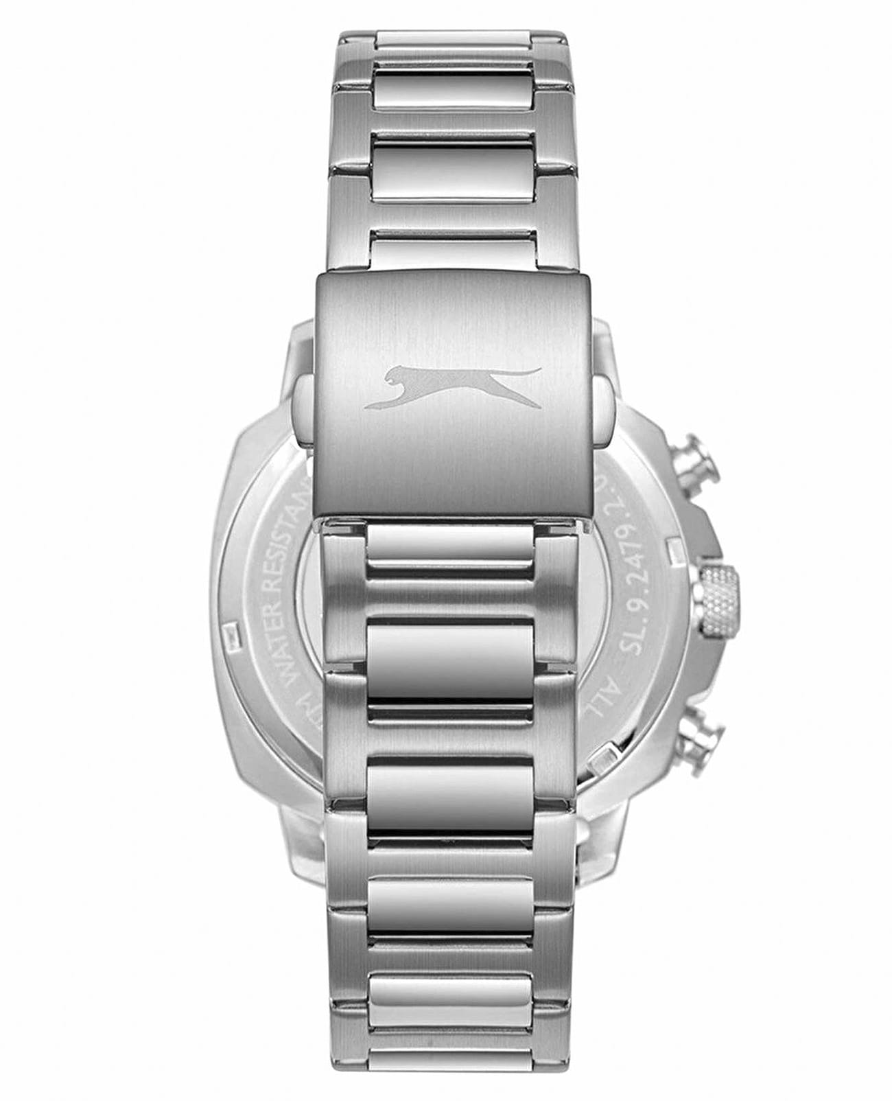 Мужские кварцевые часы Slazenger — это выразительный и функциональный аксессуар. Корпус диаметром 43 мм и толщиной 13,5 мм выполнен из нержавеющей стали 316L. Циферблат чёрного цвета оформлен индексами и стрелками. Циферблат защищён минеральным стекломМинеральное стеклоМинеральное стекло представляет собой искусственно выращенный минерал кварца. Такое стекло отличается особой устойчивостью к повреждениям и царапинам. Уступает по некоторым качествам сапфировому стеклу.. Механизм — кварцевый. Часы оснащены индикацией дня недели, даты, 12/24-часового формата времени и функцией второго часового пояса (GMT)Второй часовой поясФункция, позволяющая отображать время двух часовых поясов одновременно.. Окошко даты расположено между 4 и 5 часами. Часы оснащены стальным браслетом с раскладной застёжкойРаскладная застёжкаТакой тип застёжки используется только на браслетах из металла. Она никогда не раскрывается полностью, происходит разделение на 2 и более частей. Раскладывающая застёжка снизит вероятность потери часов к минимуму.. Водонепроницаемость 100 м позволяет использовать часы для плавания и повседневного ношения. Гарантия — 12 месяцев. Идеальный выбор для тех, кто ценит стиль, функциональность и качество.