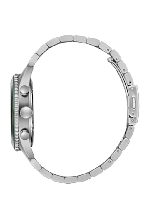 Мужские кварцевые часы Slazenger — это выразительный и функциональный аксессуар. Корпус диаметром 43 мм и толщиной 12 мм выполнен из нержавеющей стали 316L. Циферблат зелёного цвета оформлен индексами и стрелками. Циферблат защищён минеральным стекломМинеральное стеклоМинеральное стекло представляет собой искусственно выращенный минерал кварца. Такое стекло отличается особой устойчивостью к повреждениям и царапинам. Уступает по некоторым качествам сапфировому стеклу.. Механизм — кварцевый. Часы оснащены индикацией дня недели, даты, 12/24-часового формата времени и функцией второго часового пояса (GMT)Второй часовой поясФункция, позволяющая отображать время двух часовых поясов одновременно.. Окошко даты расположено между 4 и 5 часами. Стрелки и метки с люминесцентным покрытиемЛюминесцентное покрытиеПозволяет считывать показания времени в темноте. Производители наносят на стрелки, часовые индексы, безель или поверхность циферблата светонакопительный состав, дающий холодное свечение., обеспечивающим хорошую читаемость в темноте. БезельБезельВнешний ободок, закрепляющий стекло. В спортивных часах так называется поворотное кольцо с делениями на циферблате, выполняет роль таймера – замеряет отрезки времени на шкале. Неподвижный безель – элемент декора. Однонаправленно вращающийся безель на дайверских часах позволяет фиксировать моменты погружения и выныривания на поверхность. с IP-покрытиемIP-покрытиеМетод ионного напыления. Демонстрирует повышенную устойчивость к истиранию, окислению и химическим веществам. Под воздействием высокого давления и температуры около 1500°C молекулы металла надёжно соединяются с частицами корпуса часов.. Часы оснащены стальным браслетом с раскладной застёжкойРаскладная застёжкаТакой тип застёжки используется только на браслетах из металла. Она никогда не раскрывается полностью, происходит разделение на 2 и более частей. Раскладывающая застёжка снизит вероятность потери часов к минимуму.. Водонепроницаемость 100 м позволяет использовать часы для плавания и повседневного ношения. Гарантия — 12 месяцев. Идеальный выбор для тех, кто ценит стиль, функциональность и качество.