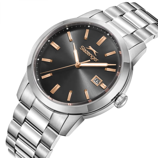 Мужские кварцевые часы Slazenger — это выразительный и функциональный аксессуар. Корпус диаметром 42 мм и толщиной 12 мм выполнен из нержавеющей стали 316L. Циферблат чёрного цвета оформлен индексами и стрелками. Циферблат защищён минеральным стекломМинеральное стеклоМинеральное стекло представляет собой искусственно выращенный минерал кварца. Такое стекло отличается особой устойчивостью к повреждениям и царапинам. Уступает по некоторым качествам сапфировому стеклу.. Механизм — кварцевый. Окошко даты расположено в положении 3 часов. Стрелки и метки с люминесцентным покрытиемЛюминесцентное покрытиеПозволяет считывать показания времени в темноте. Производители наносят на стрелки, часовые индексы, безель или поверхность циферблата светонакопительный состав, дающий холодное свечение., обеспечивающим хорошую читаемость в темноте. Часы оснащены стальным браслетом на застёжке «бабочка» с кнопкамиЗастёжка "бабочка"Такой вид застёжки дополняется предохранителями, помогающими избежать случайного раскрытия браслета. Обладают изящным исполнением. . Водонепроницаемость 100 м позволяет использовать часы для плавания и повседневного ношения. Гарантия — 12 месяцев. Идеальный выбор для тех, кто ценит стиль, функциональность и качество.