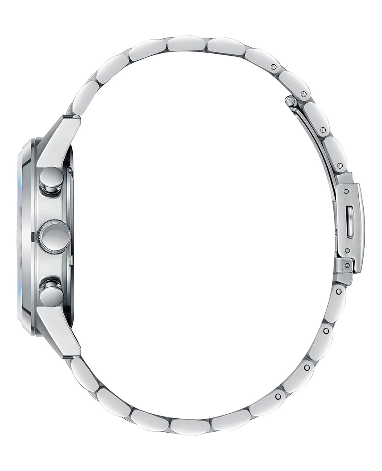 Мужские кварцевые часы Slazenger — это выразительный и функциональный аксессуар. Корпус диаметром 42 мм и толщиной 12 мм выполнен из нержавеющей стали 316L. Циферблат белого цвета оформлен индексами и стрелками. Окошко даты расположено на отметке в 6 часов. Указатель дня недели и 24-часовой формат времени вынесены на отдельные субциферблаты. Циферблат защищён минеральным стекломМинеральное стеклоМинеральное стекло представляет собой искусственно выращенный минерал кварца. Такое стекло отличается особой устойчивостью к повреждениям и царапинам. Уступает по некоторым качествам сапфировому стеклу.. Механизм — кварцевый калибр JP25. Часы оснащены функцией второго часового пояса (GMT)Второй часовой поясФункция, позволяющая отображать время двух часовых поясов одновременно.. Стрелки и метки с люминесцентным покрытиемЛюминесцентное покрытиеПозволяет считывать показания времени в темноте. Производители наносят на стрелки, часовые индексы, безель или поверхность циферблата светонакопительный состав, дающий холодное свечение., обеспечивающим хорошую читаемость в темноте. Часы оснащены стальным браслетом с раскладной застёжкойРаскладная застёжкаТакой тип застёжки используется только на браслетах из металла. Она никогда не раскрывается полностью, происходит разделение на 2 и более частей. Раскладывающая застёжка снизит вероятность потери часов к минимуму.. Водонепроницаемость 100 м позволяет использовать часы для плавания и повседневного ношения. Идеальный выбор для тех, кто ценит стиль, функциональность и качество.