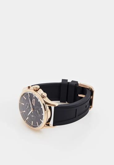 Мужские кварцевые часы Slazenger — это выразительный и функциональный аксессуар. Корпус диаметром 47 мм и толщиной 15 мм выполнен из суперметалла с IP-покрытиемIP-покрытиеМетод ионного напыления. Демонстрирует повышенную устойчивость к истиранию, окислению и химическим веществам. Под воздействием высокого давления и температуры около 1500°C молекулы металла надёжно соединяются с частицами корпуса часов.. Циферблат чёрного цвета оформлен индексами, стрелками и тремя вынесенными субциферблатами: для отображения дня недели, даты и 24-часового формата времени. Стрелки с люминесцентным покрытиемЛюминесцентное покрытиеПозволяет считывать показания времени в темноте. Производители наносят на стрелки, часовые индексы, безель или поверхность циферблата светонакопительный состав, дающий холодное свечение., обеспечивающим читаемость в темноте. Циферблат защищён минеральным стекломМинеральное стеклоМинеральное стекло представляет собой искусственно выращенный минерал кварца. Такое стекло отличается особой устойчивостью к повреждениям и царапинам. Уступает по некоторым качествам сапфировому стеклу.. Часы оснащены силиконовым ремешком на классической пряжке. Водонепроницаемость 50 м позволяет использовать часы в повседневных условиях. Идеальный выбор для тех, кто ценит стиль и качество.