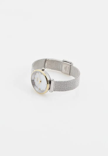 Женские кварцевые часы Slazenger — это элегантный аксессуар. Корпус диаметром 30 мм и толщиной 8 мм выполнен из суперметалла. БезельБезельВнешний ободок, закрепляющий стекло. В спортивных часах так называется поворотное кольцо с делениями на циферблате, выполняет роль таймера – замеряет отрезки времени на шкале. Неподвижный безель – элемент декора. Однонаправленно вращающийся безель на дайверских часах позволяет фиксировать моменты погружения и выныривания на поверхность. с IP-покрытиемIP-покрытиеМетод ионного напыления. Демонстрирует повышенную устойчивость к истиранию, окислению и химическим веществам. Под воздействием высокого давления и температуры около 1500°C молекулы металла надёжно соединяются с частицами корпуса часов.. Циферблат серебристого цвета оформлен индексами, стрелками и украшен фианитами. Циферблат защищён минеральным стекломМинеральное стеклоМинеральное стекло представляет собой искусственно выращенный минерал кварца. Такое стекло отличается особой устойчивостью к повреждениям и царапинам. Уступает по некоторым качествам сапфировому стеклу.. Часы оснащены браслетом миланского плетения из суперметалла на раскладном замкеРаскладная застёжкаТакой тип застёжки используется только на браслетах из металла. Она никогда не раскрывается полностью, происходит разделение на 2 и более частей. Раскладывающая застёжка снизит вероятность потери часов к минимуму.. Водонепроницаемость 30 м позволяет использовать часы в повседневных условиях. Идеальный выбор для тех, кто ценит стиль и качество.