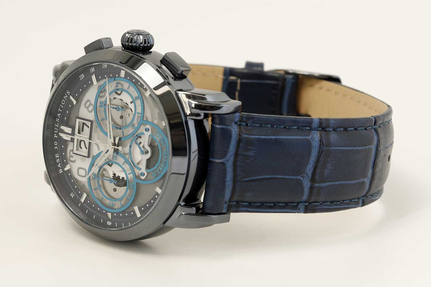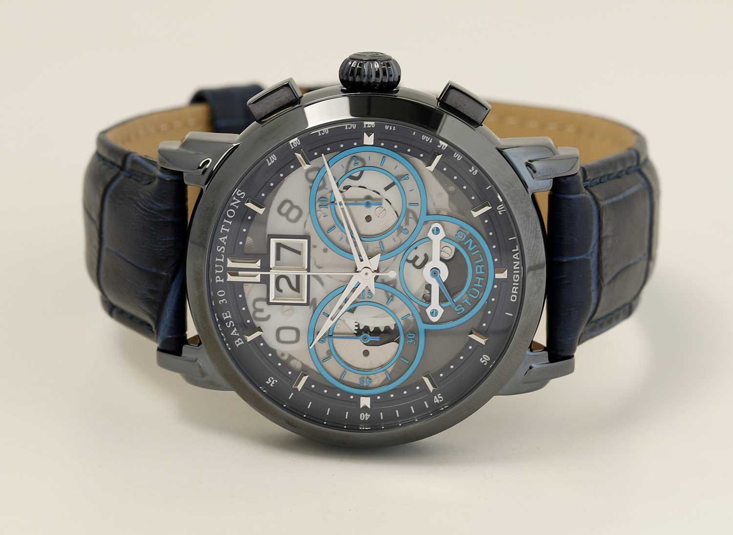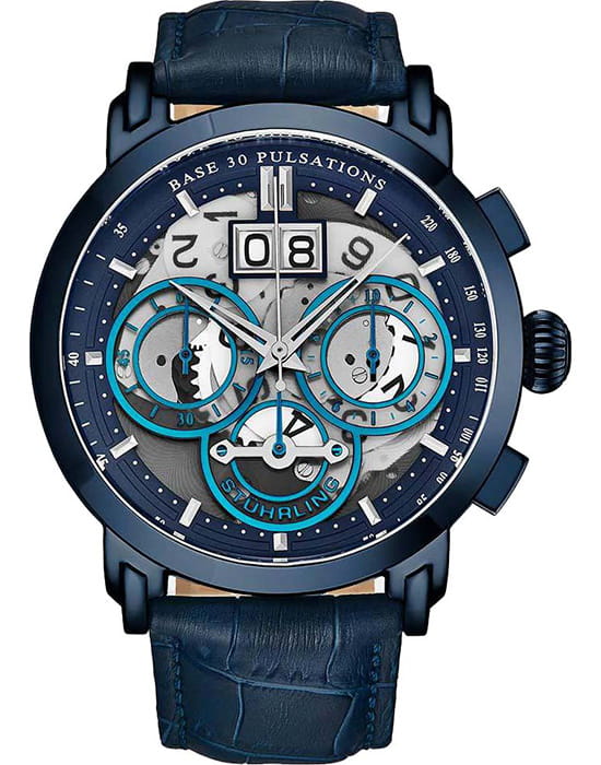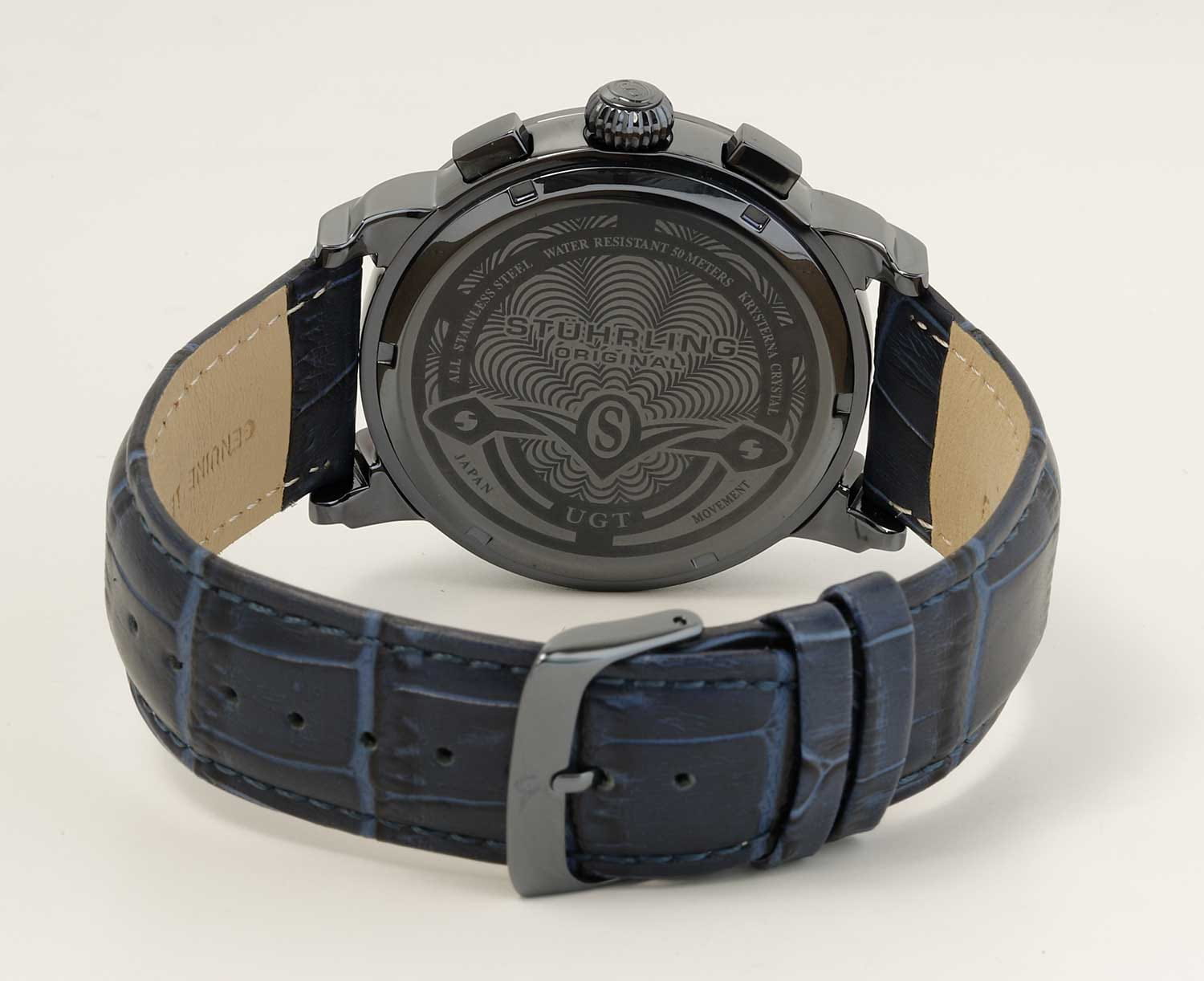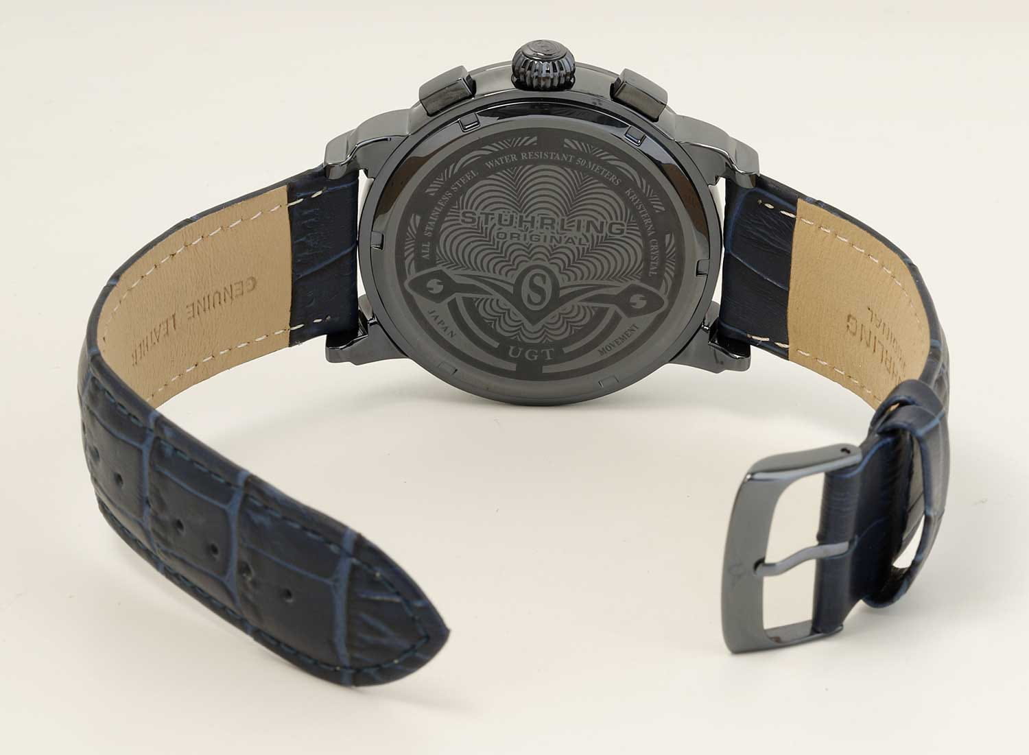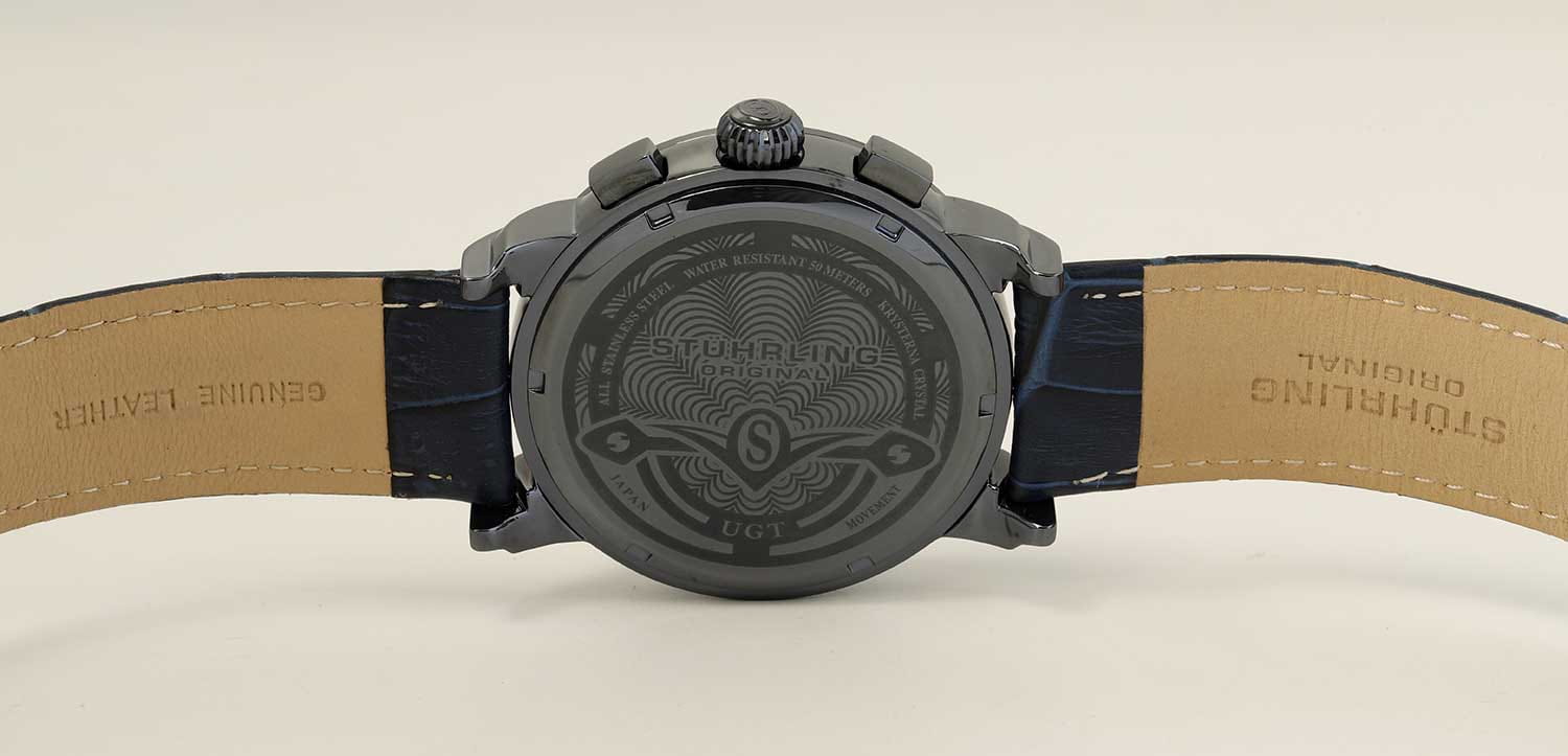 Stuhrling 392.02 — мощные мужские часы с выразительным индустриальным дизайном и технологичной эстетикой. Матовый корпус с PVD-покрытиемPVDУльтратонкое покрытие наносится в технике вакуумного напыления, сочетает в себе нитрид титана особой прочности со слоем золота или оксида хрома. Несёт в себе декоративную или защитную функцию. подчёркивает брутальный характер модели, а многослойный циферблат с тремя счётчиками хронографаХронографФункция позволяет измерять отрезки времени с особой точностью: часы, минуты, секунды. Верным признаком хронографа является наличие на циферблате 3 дополнительных окошек-счётчиков. и крупным окном даты создаёт эффект глубины и механической сложности. Контрастные стрелки и метки обеспечивают превосходную читаемость. Прочное стекло KrysternaKrysternaKrysterna — инновационное стекло для наручных часов. Благодаря уникальной структуре, Krysterna объединяет ключевые преимущества двух материалов: твердость сапфира, защищающую от царапин, и гибкость минерального стекла, обеспечивающую устойчивость к деформациям. Такая комбинация делает его идеальным решением для часов, подверженных экстремальным нагрузкам, сохраняя при этом оптическую прозрачность. защищает от царапин, а кожаный ремень с текстурой под крокодила придаёт модели утончённость и комфорт. Stuhrling — это современный баланс между инженерной мощью и смелым дизайнерским почерком.
