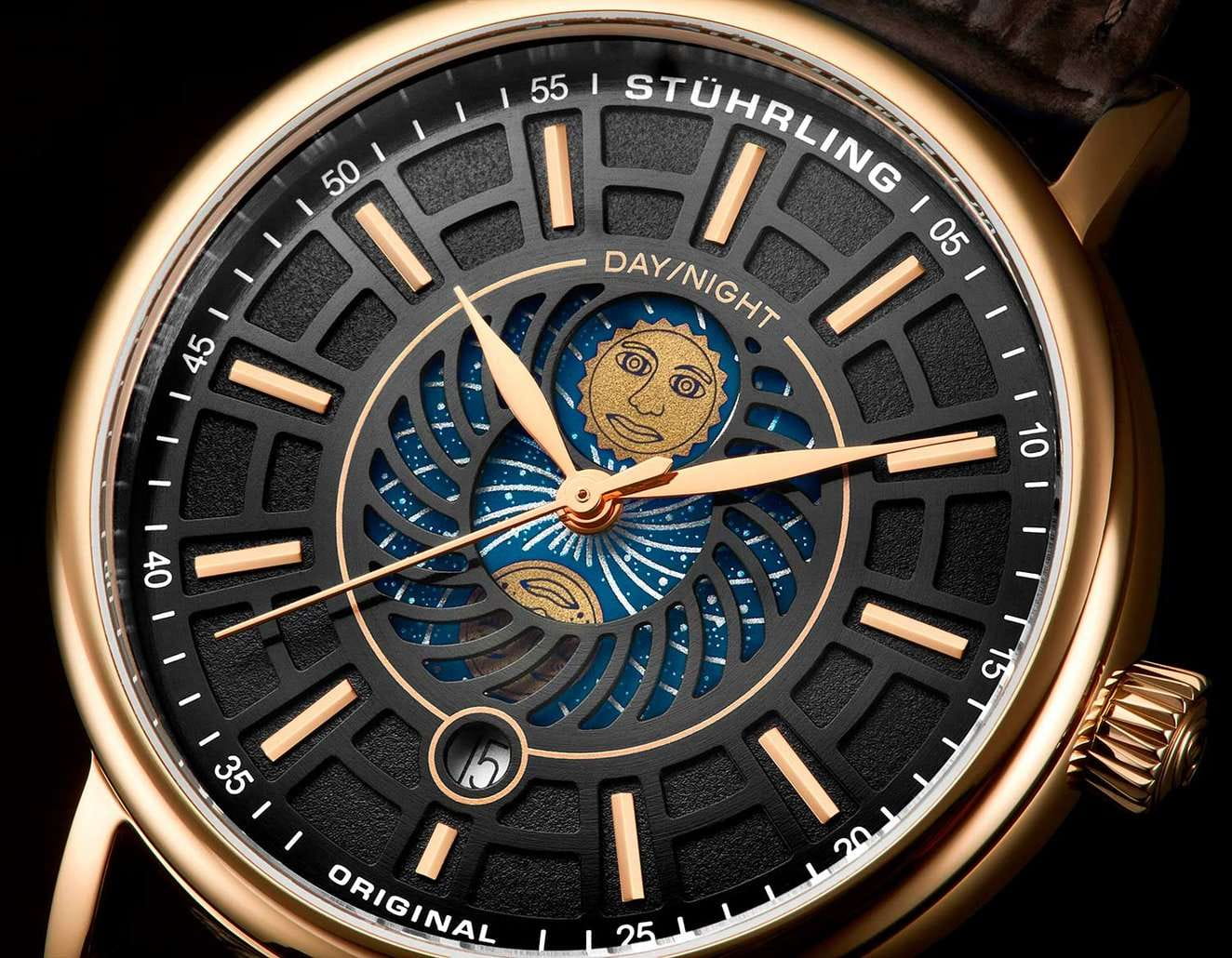 Stuhrling 899.05 — выразительные мужские часы с уникальным дизайнерским решением. Глубокий циферблат с геометрическим узором придаёт модели эффектный и современный вид. Корпус из нержавеющей стали с PVD-покрытиемPVDУльтратонкое покрытие наносится в технике вакуумного напыления, сочетает в себе нитрид титана особой прочности со слоем золота или оксида хрома. Несёт в себе декоративную или защитную функцию. отличается аккуратной полировкой и плавными формами, подчёркивающими элегантность классического стиля. Прочное стекло KrysternaKrysternaKrysterna — инновационное стекло для наручных часов. Благодаря уникальной структуре, Krysterna объединяет ключевые преимущества двух материалов: твердость сапфира, защищающую от царапин, и гибкость минерального стекла, обеспечивающую устойчивость к деформациям. Такая комбинация делает его идеальным решением для часов, подверженных экстремальным нагрузкам, сохраняя при этом оптическую прозрачность. защищает поверхность от царапин, сохраняя прозрачность и глубину цвета. Ремень из натуральной кожи на стандартной застежке, обеспечивает комфорт и надёжность при ежедневном ношении. Stuhrling — это гармония механической точности и выразительного дизайна, созданная для мужчин, ценящих стиль и совершенство деталей.