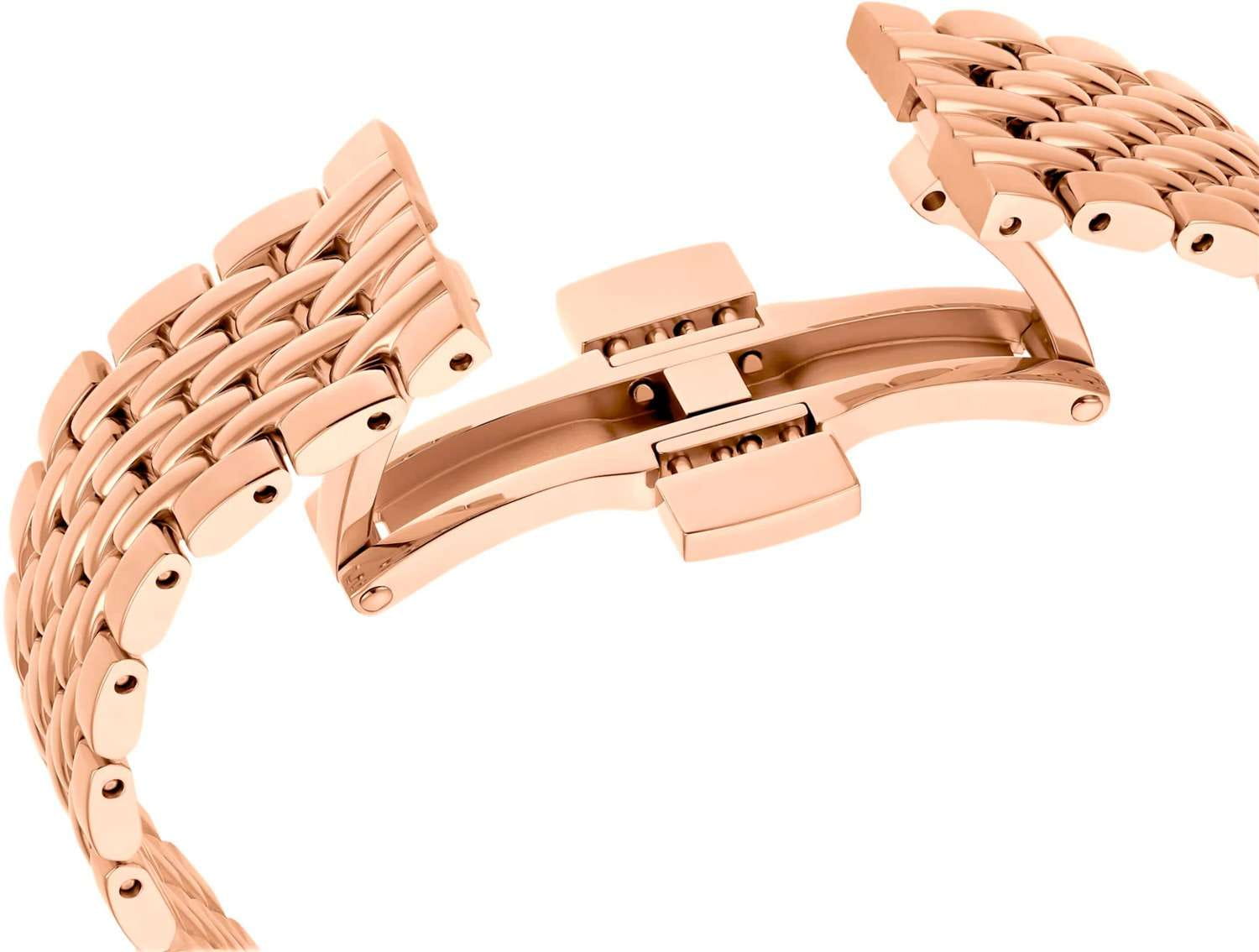 Часы Swarovski 5656911 представляют собой идеальное сочетание роскоши и изысканности, которые подчеркнут вашу индивидуальность и стиль. Эти швейцарские часы оснащены надежным кварцевым механизмом, гарантирующим точность времени. Круглый корпус из нержавеющей стали с PVDPVDУльтратонкое покрытие наносится в технике вакуумного напыления, сочетает в себе нитрид титана особой прочности со слоем золота или оксида хрома. Несёт в себе декоративную или защитную функцию. покрытием оттенка розового золота создает элегантный и утонченный образ. Под куполообразным минеральным стекломМинеральное стеклоМинеральное стекло представляет собой искусственно выращенный минерал кварца. Такое стекло отличается особой устойчивостью к повреждениям и царапинам. Уступает по некоторым качествам сапфировому стеклу. расположен серебристый циферблат, декорированный примерно тысячью сверкающих кристаллов Swarovski. Метки в виде штрихов и арабских цифр добавляют классический акцент, а граненая заводная головка украшена кристаллом круглой огранки. Стальной браслет с розовым PVDPVDУльтратонкое покрытие наносится в технике вакуумного напыления, сочетает в себе нитрид титана особой прочности со слоем золота или оксида хрома. Несёт в себе декоративную или защитную функцию. покрытием обеспечивает комфорт и стиль, а застежка «бабочка»Застёжка "бабочка"Такой вид застёжки дополняется предохранителями, помогающими избежать случайного раскрытия браслета. Обладают изящным исполнением. гарантирует надежную фиксацию на запястье. Водозащита 50WR позволяет носить часы в различных условиях, защищая их от воздействия влаги. С диаметром корпуса 35 мм и длиной ремешка 16,5 см, эти часы идеально подходят для любого случая, создавая выразительный и эффектный образ.