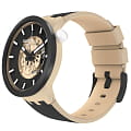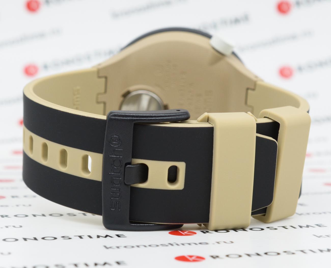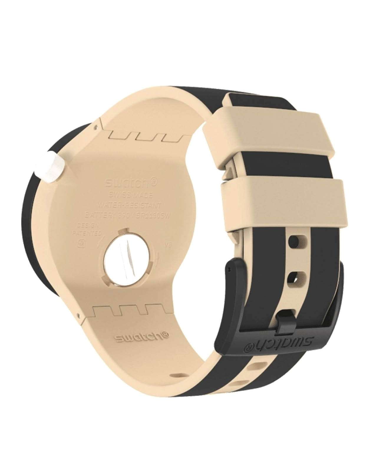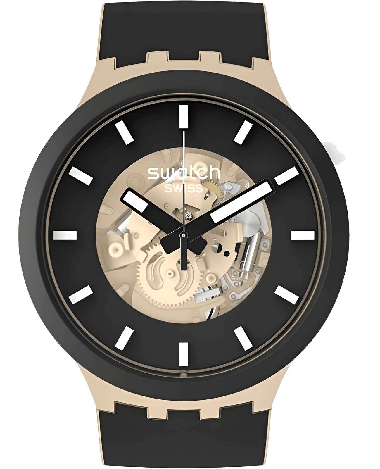 Часы Swatch SB03C100 — это стильный и современный аксессуар для тех, кто ценит лёгкость и комфорт. Часы идеально подойдут как для мужчин, так и для женщин. Центральный элемент этой модели часов — большой корпус со стеклом из био-материала, украшенный 3D-циферблатом с принтами на индексах. Корпус и безельБезельВнешний ободок, закрепляющий стекло. В спортивных часах так называется поворотное кольцо с делениями на циферблате, выполняет роль таймера – замеряет отрезки времени на шкале. Неподвижный безель – элемент декора. Однонаправленно вращающийся безель на дайверских часах позволяет фиксировать моменты погружения и выныривания на поверхность. из биокерамикиБиокерамикаБиокерамика — это материал, который на две трети состоит из керамики, на одну треть — из биопластика. Он сочетает в себе лучшие качества обоих материалов и обладает прочностью и шелковистой на ощупь текстурой., а также силиконовые тренчики подчеркивают бежевый принт на силиконовом ремешке этих огромных часов. На часовую, минутную стрелки нанесено люминесцентное покрытиеЛюминесцентное покрытиеПозволяет считывать показания времени в темноте. Производители наносят на стрелки, часовые индексы, безель или поверхность циферблата светонакопительный состав, дающий холодное свечение., которое светится в темноте, создавая необычное изображение. Водозащита 30 метров делает часы практичными для повседневного использования. Эти часы подойдут для повседневного ношения и станут ярким акцентом в вашем наряде.