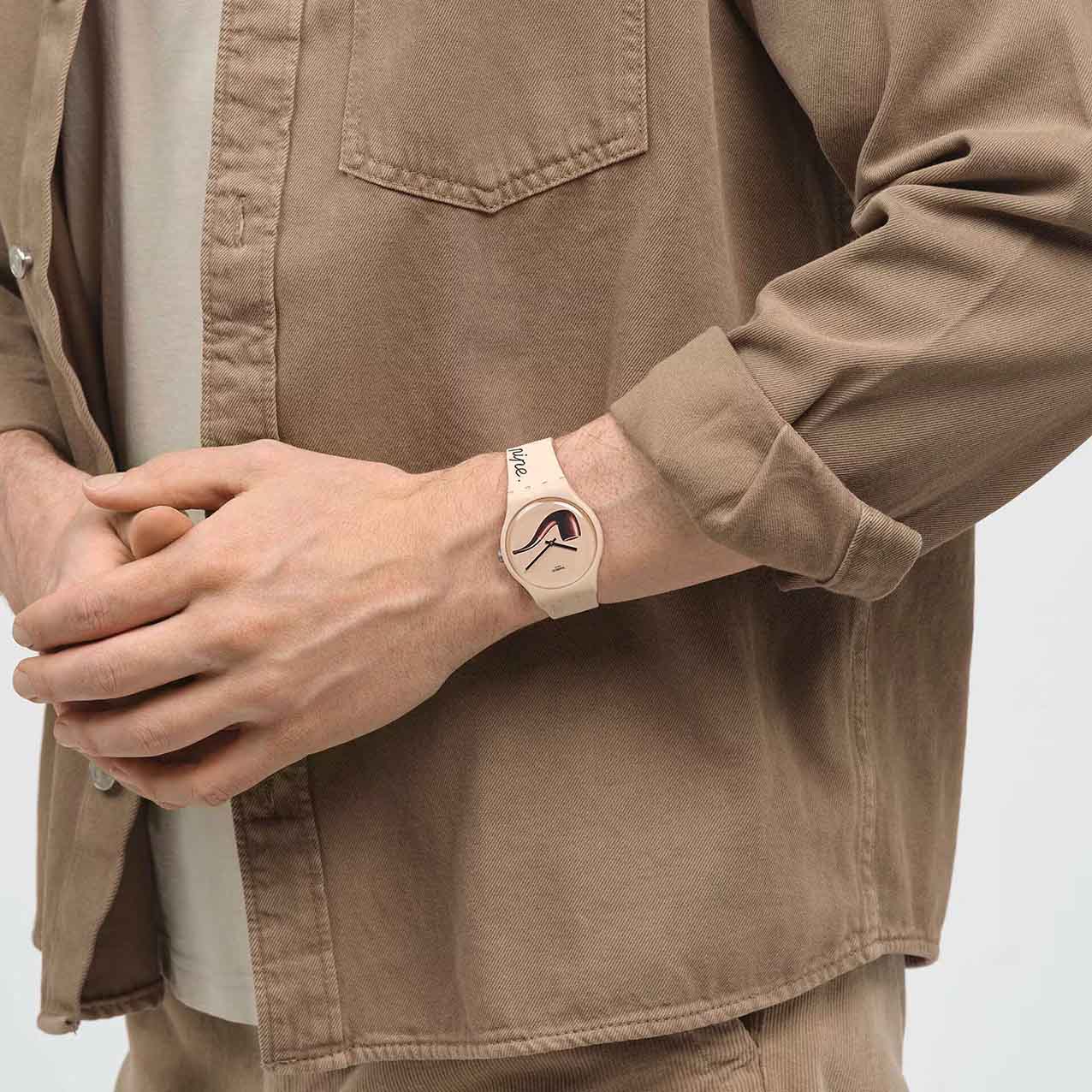 Часы Swatch SO29Z124 — стильный и надежный аксессуар. Оформление этих часов включает детали культового произведения сюрреалистического художника Рене Магритта "La Trahison des images" (Предательство образов), напечатанные на бежевом циферблате. На передней части ремешка подчеркивается сюрреалистическая природа его творчества фразой: "Ceci n'est pas une pipe. Ceci est une Swatch." ("Это не трубка. Это Swatch."). На петле также напечатано имя художника. Циферблат покрыт биостеклом. Ремешок силиконовый на классической застежке. Внутри часов установлен надежный кварцевый механизм, который обеспечивает точность хода. Эти часы водонепроницаемы до 30 метров, что позволяет не беспокоиться о случайных брызгах или дождевых каплях. Swatch SO29Z124 — это идеальный выбор для тех, кто ценит сочетание стиля, комфорта и функциональности в одном аксессуаре.