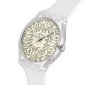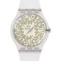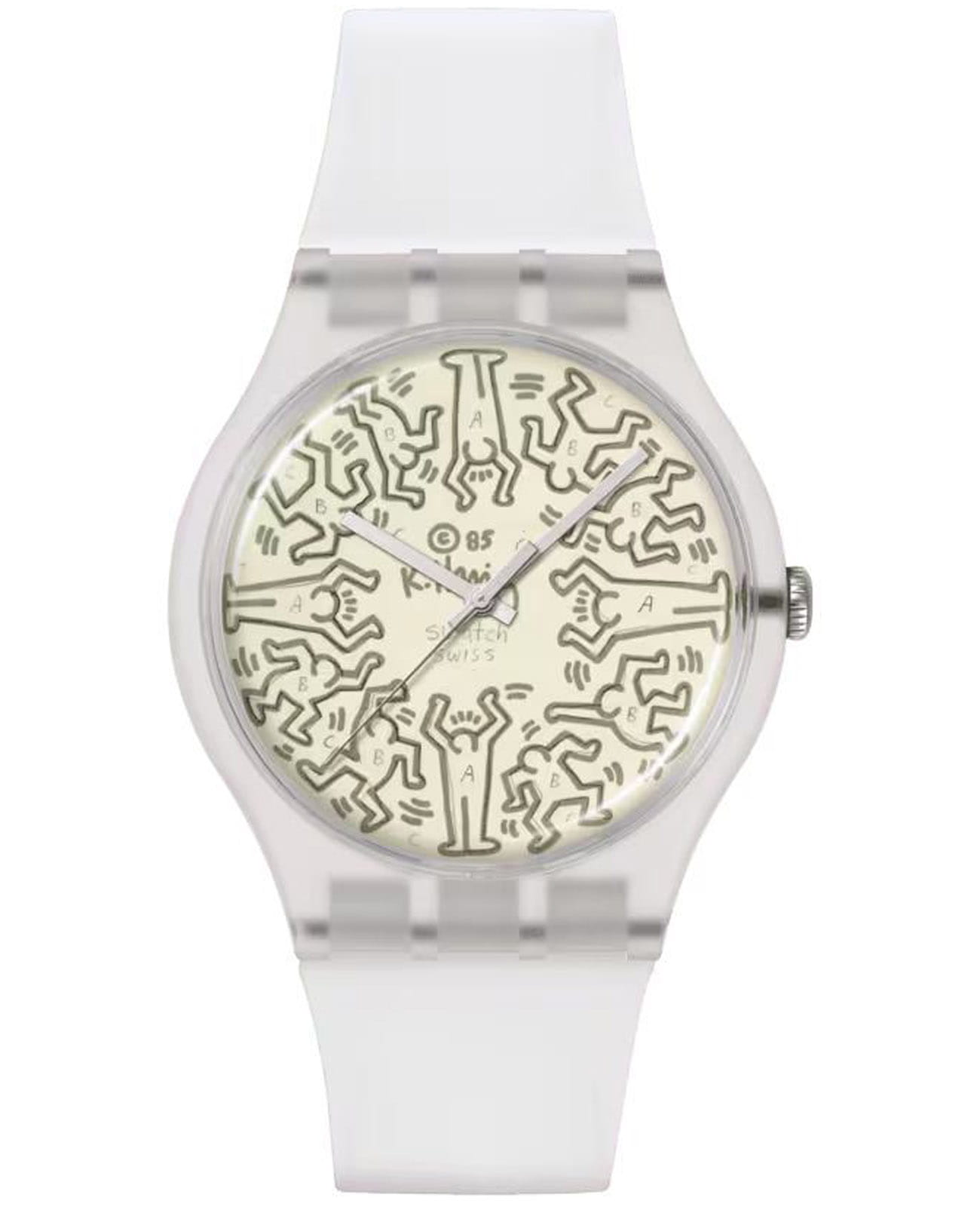 Часы Swatch SO29Z145 — стильный и удобный аксессуар. Матовый светло-бежевый циферблат этих часов украшен серыми рисунками, подписью и авторскими правами художника Кита Харинга, а также интерпретацией логотипа Swatch. Серебристые часовая, минутная и секундная стрелки защищены стеклом из биоматериала. Матовый прозрачный корпус из биоматериала, а также матовые прозрачные ремешок, петля и пряжка завершают дизайн этих часов. Ремешок силиконовый на стандартной застёжке. Внутри часов установлен надежный кварцевый механизм, который обеспечивает точность хода. Эти часы водонепроницаемы до 30 метров, что позволяет не беспокоиться о случайных брызгах или дождевых каплях. Swatch SO29Z145 — это идеальный выбор для тех, кто ценит сочетание стиля, комфорта и функциональности в одном аксессуаре.