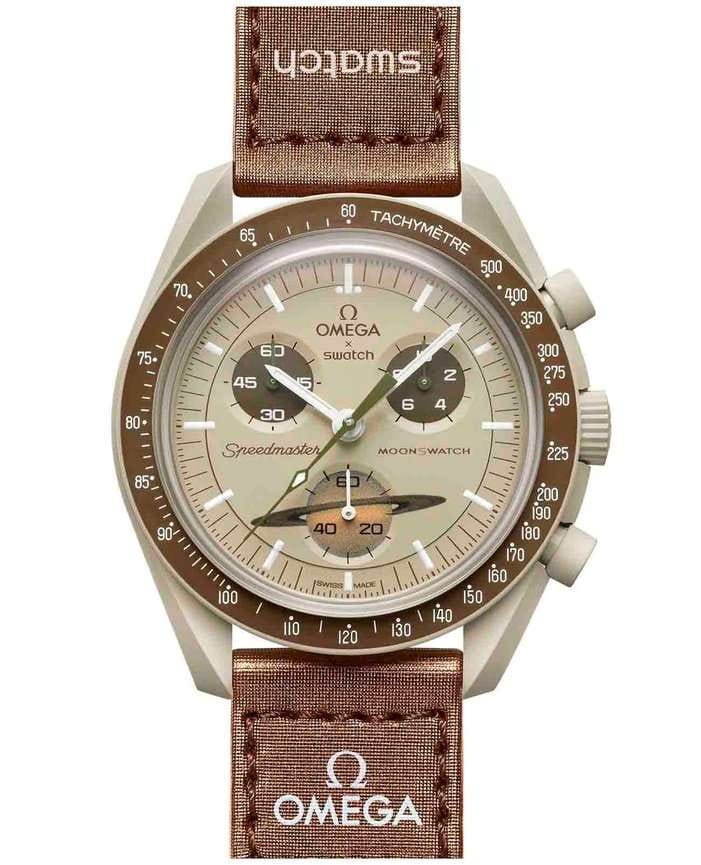 Швейцарские мужские часы Swatch x Omega Bioceramic Moonswatch Mission to Saturn SO33T100 с хронографом