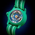 Швейцарские наручные часы сочетают в себе современный дизайн и инновационные технологии. Модель обладает круглым корпусом диаметром 42,3 мм, изготовленным из биокерамикиБиокерамикаБиокерамика — это материал, который на две трети состоит из керамики, на одну треть — из биопластика. Он сочетает в себе лучшие качества обоих материалов и обладает прочностью и шелковистой на ощупь текстурой., что обеспечивает высокую прочность и устойчивость к внешним воздействиям . Толщина корпуса составляет 14,4 мм, а расстояние между ушками — 48,0 мм, что делает часы удобными для повседневного использования . Ремешок выполнен из ткани в стиле ремешка NATOРемешок NATOРемешок NATO — это прочный, универсальный и сменный часовой ремешок, изначально созданный для военных. Он изготовлен из нейлона или другого прочного материала и имеет уникальную конструкцию, которая позволяет часам оставаться на запястье даже в случае поломки одной из прикрепляющих точек. , гарантируя комфортное ношение и долговечность . Зеленый циферблат дополнен люминесцентными метками и арабскими цифрами, что обеспечивает четкость считывания времени в любых условиях . Для защиты используется органическое стекло, обеспечивающее надежную защиту от царапин и механических повреждений . Часы работают на автоматическом механизме Sistem51, что гарантирует точность хода без необходимости регулярной подзаводки . Водонепроницаемость часов достигает 100 метров, что позволяет использовать их в повседневных условиях, однако не рекомендуется погружение на большую глубину . Дополнительные элементы дизайна, такие как заводная головка и кнопки-пушеры, выполненные из биокерамикиБиокерамикаБиокерамика — это материал, который на две трети состоит из керамики, на одну треть — из биопластика. Он сочетает в себе лучшие качества обоих материалов и обладает прочностью и шелковистой на ощупь текстурой., завершают образ этих стильных и функциональных часов.