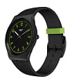 Часы Swatch SS07B108 — это стильный и современный аксессуар для тех, кто ценит лёгкость и комфорт. Часы идеально подойдут как для мужчин, так и для женщин. Эффектность данной модели придает черный циферблат с зелеными индексами и черными стрелками, светящимися в темноте благодаря люминесцентному покрытиюЛюминесцентное покрытиеПозволяет считывать показания времени в темноте. Производители наносят на стрелки, часовые индексы, безель или поверхность циферблата светонакопительный состав, дающий холодное свечение., а также минеральное стеклоМинеральное стеклоМинеральное стекло представляет собой искусственно выращенный минерал кварца. Такое стекло отличается особой устойчивостью к повреждениям и царапинам. Уступает по некоторым качествам сапфировому стеклу.. Эти черные часы дополнены каучуковым ремешком с текстурированной лицевой стороной и зеленым тренчиком, а также матовой пряжкой и корпусом с черным PVDPVDУльтратонкое покрытие наносится в технике вакуумного напыления, сочетает в себе нитрид титана особой прочности со слоем золота или оксида хрома. Несёт в себе декоративную или защитную функцию. покрытием.  Водозащита 30 метров делает часы практичными для повседневного использования. Эти часы подойдут для повседневного ношения и станут ярким акцентом в вашем наряде.