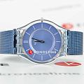 Часы Swatch SS08K120M — это стильный и современный аксессуар для тех, кто ценит лёгкость и комфорт. Часы идеально подойдут как для мужчин, так и для женщин. Эти ультратонкие часы имеют голубой циферблат c радиальной полировкой, серебристыми индексами, часовой и минутной стрелками, а также блестящий, прозрачный корпус, покрытый изготовленным из биоматериала стеклом. Регулируемый сетчатый браслет из нержавеющей стали с голубым покрытием PVDPVDУльтратонкое покрытие наносится в технике вакуумного напыления, сочетает в себе нитрид титана особой прочности со слоем золота или оксида хрома. Несёт в себе декоративную или защитную функцию. с раскладным замкомРаскладной замокДанный вариант застежки используется только на часах с металлическим браслетом. Отличительная особенность такого крепления в том, что длина браслета становится универсальной и вы можете самостоятельно отрегулировать нужный вам размер – застежка просто двигается по браслету часов. превосходно дополняет внешний вид этих изящных часов. Водозащита 30 метров делает часы практичными для повседневного использования. Эти часы подойдут для повседневного ношения и станут ярким акцентом в вашем наряде.