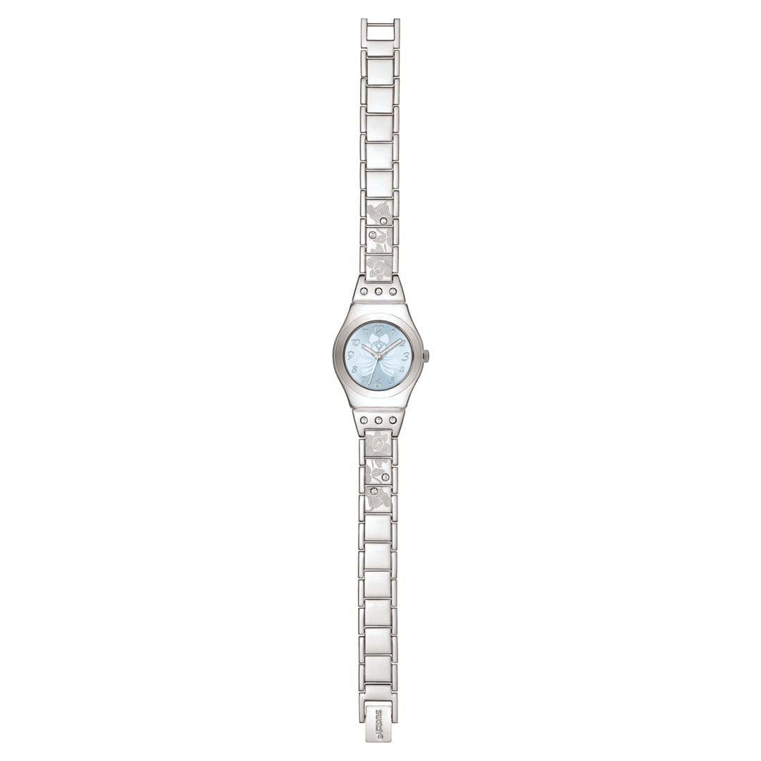 Часы Swatch YSS222G — это стильный и современный аксессуар для тех, кто ценит лёгкость и комфорт. На ремешке из нержавеющей стали этого браслета выгравированы цветы, словно вышитые шелком. Прозрачные светло-голубые кристаллы на браслете и торцевых деталях придают блеск и обрамляют корпус. Синий циферблат, подсвеченный солнцем, дополняет нежную цветочную игру браслета изящным серебряным цветочным узором и арабскими цифрами с серебряной печатью на всех часах. Часовая и минутная стрелки из светоотражающего металла и тонкая белая секундная стрелка указывают время. Водозащита 30 метров делает часы практичными для повседневного использования. Эти часы подойдут для повседневного ношения и станут ярким акцентом в вашем наряде.