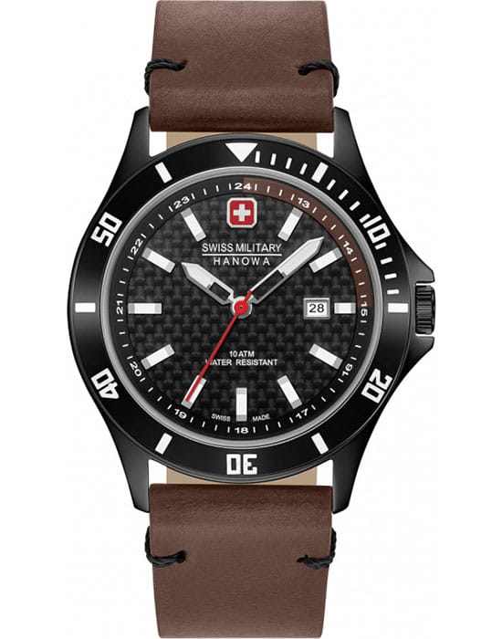 Мужские швейцарские часы с сапфировым стекломСапфировое стеклоПрочный и надёжный материал из кристалла сапфира синтетического происхождения, характеризующийся особой твёрдостью и устойчивостью к царапинам и повреждениям. Swiss Military Hanowa Flagship Racer 06-4161.2.30.007.05, кварцевый механизм с высокой точностью. Сапфировое стеклоСапфировое стеклоПрочный и надёжный материал из кристалла сапфира синтетического происхождения, характеризующийся особой твёрдостью и устойчивостью к царапинам и повреждениям. устойчивое к появлению царапин, обладающее высокой прозрачностью. Класс водозащиты: 100 метров, позволит плавать, нырять и заниматься другими водными видами спорта. Корпус часов изготовлен из стали с IP-покрытиемIP-покрытиеМетод ионного напыления. Демонстрирует повышенную устойчивость к истиранию, окислению и химическим веществам. Под воздействием высокого давления и температуры около 1500°C молекулы металла надёжно соединяются с частицами корпуса часов.. Центральные часовая, минутная и секундная стрелки. Апертура даты в позиции 3 часов. Черный карбоновый циферблат. Кожаный ремешок на стандартной застёжке. Стрелки и метки с люминесцентным покрытиемЛюминесцентное покрытиеПозволяет считывать показания времени в темноте. Производители наносят на стрелки, часовые индексы, безель или поверхность циферблата светонакопительный состав, дающий холодное свечение..